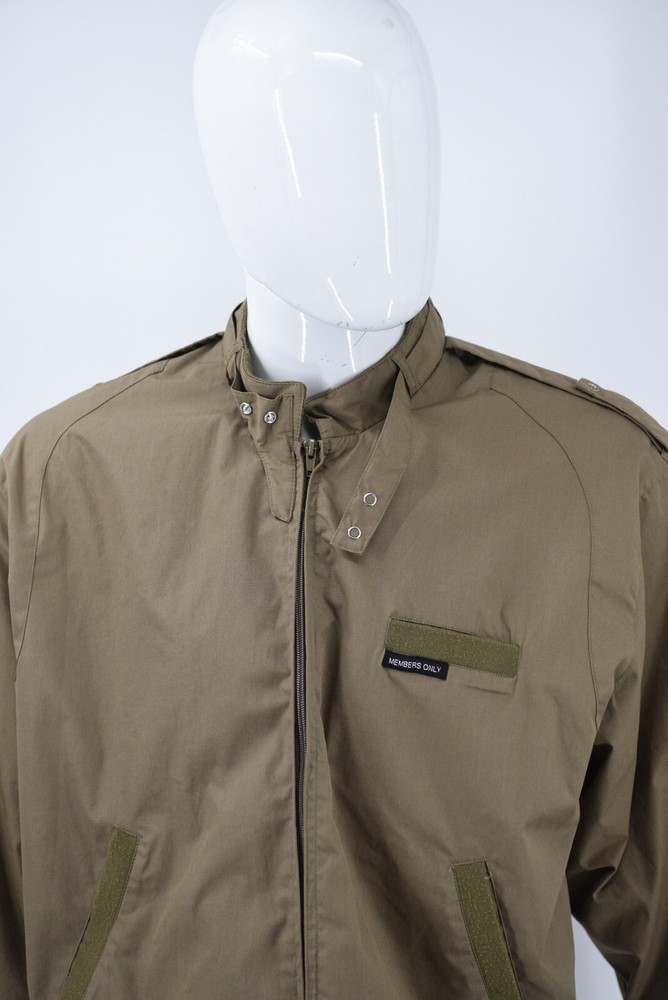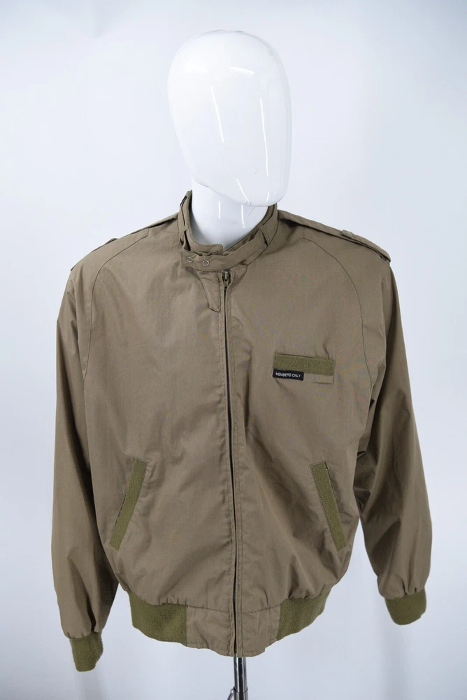 Members Only Jacket DESCRIPTION - Snap tab collar - Snap epaulets - Rib knit cuffs, pocket trim & waist BRAND: Members Only ~MEASUREMENTS: Chest: 24.5" (pit to pit) Length: 27" (back collar seam to hem) MATERIALS: Shell: 65% cotton / 35% polyester Lining: 100% polyester STYLE: Full Zip Bomber Jacket SIZE: Mens Medium COLOR(S): Light Brown CONDITION: Pre Owned / Exactly as pictured - please message with any questions or for more photos AUTHENTICITY: ALL ITEMS ARE 100% Authentic. Thank you so much for checking the store out, Feel free to check out our other items! SHIPPING All US orders will be shipped via USPS ground advantage mail. All international orders will be shipped via Ebay's Global shipping program. Will ship within 3 (typically 1-2) business days of payment. Shipping includes insurance. PAYMENT All Ebay Accepted Forms of Payment RETURN 14 day returns - buyer pays return shipping EXCHANGE No exchanges. CANCELLATION Possible cancellation upon request CONTACT Please email with any questions or for more photos. We appreciate your feedback.