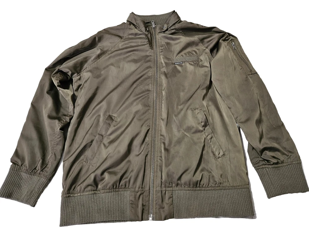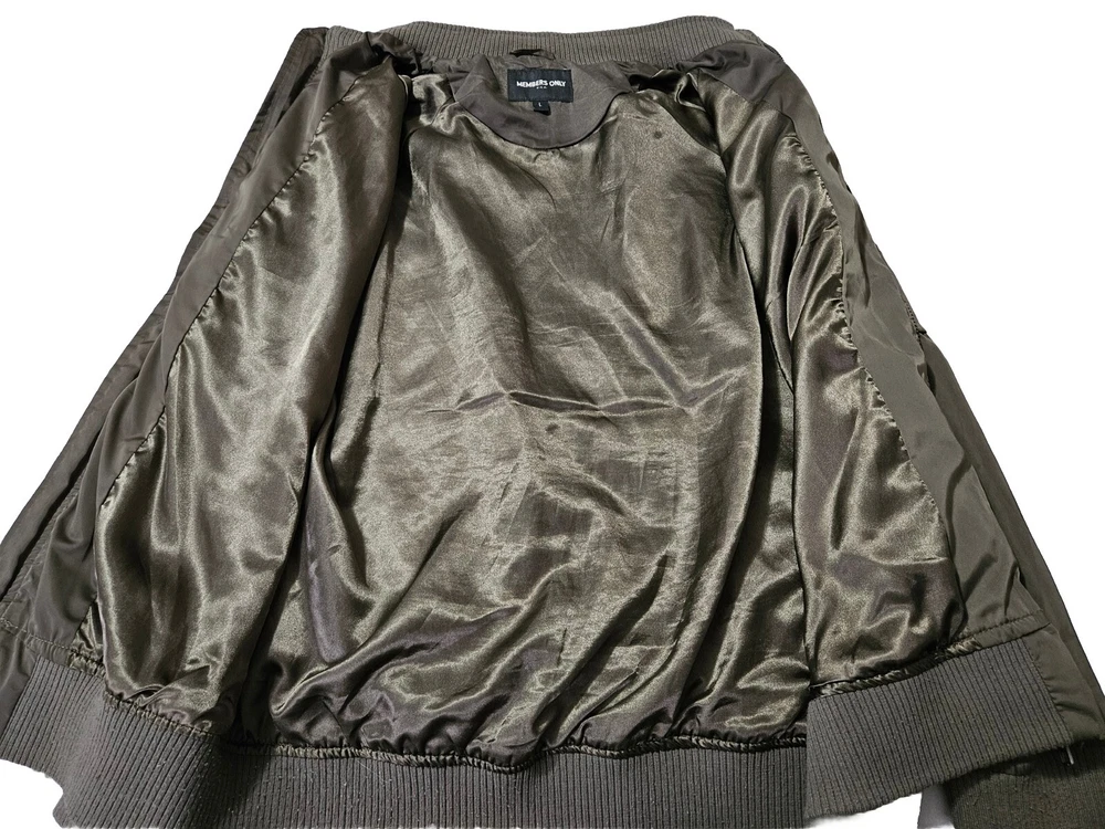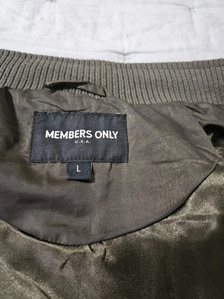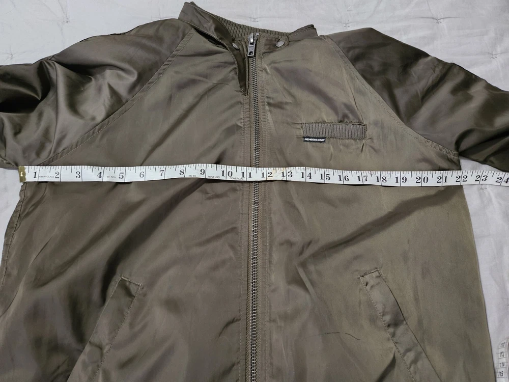 Style: Bomber Jacket Type: Jacket Season: Winter, Summer, Spring, Fall Brand: Members Only Department: Men Features: Lined Outer Shell Material: Polyester Closure: Snap Vintage: Yes Lining Material: Polyester Pattern: Solid Color: Green Size: L Theme: Army Size Type: Regular