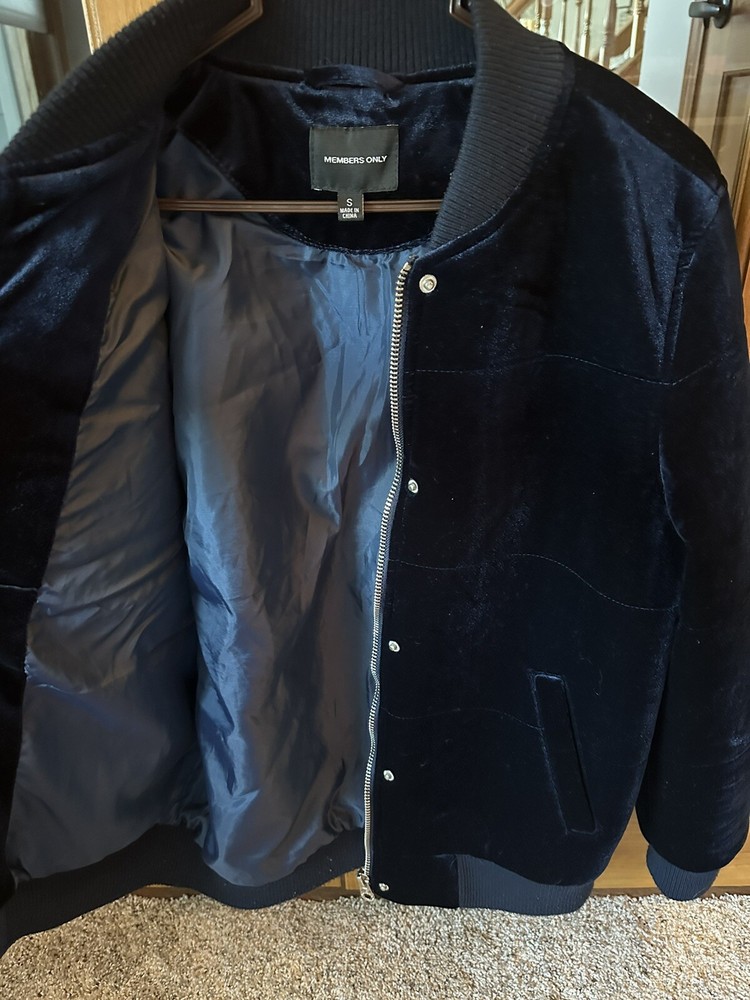 This jacket is a total game-changer! The navy velvet looks so luxurious, and the fit is perfect—sleek but comfortable. The quality is amazing for the price, and it adds instant style to any outfit. Super soft and surprisingly warm, it’s become my go-to for nights out. Love the classic Members Only vibe with a modern twist. Highly recommend!
