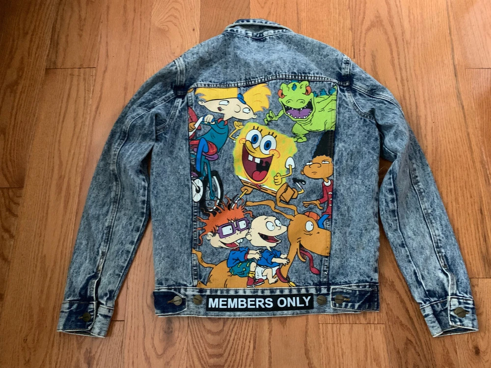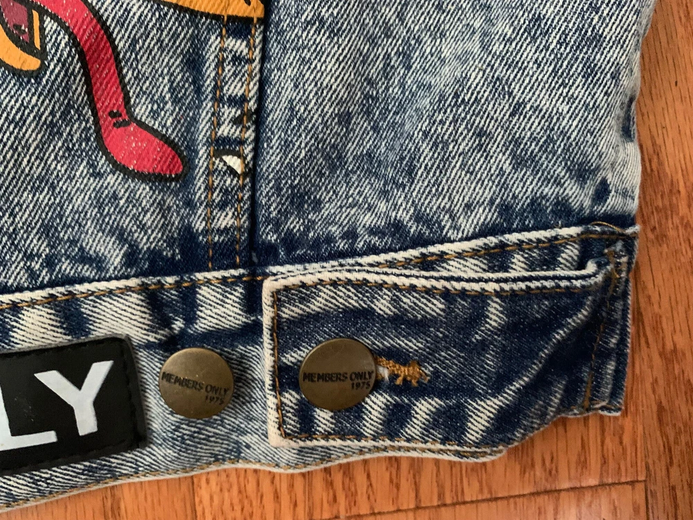 Brand: Members Only / Nickelodeon Condition: Good condition, gently worn. Looks Unworn! Marked a size Small Measurements: 38" chest, 26" length and sleeves are 26". Cool Vintage Acid Wash Jacket!