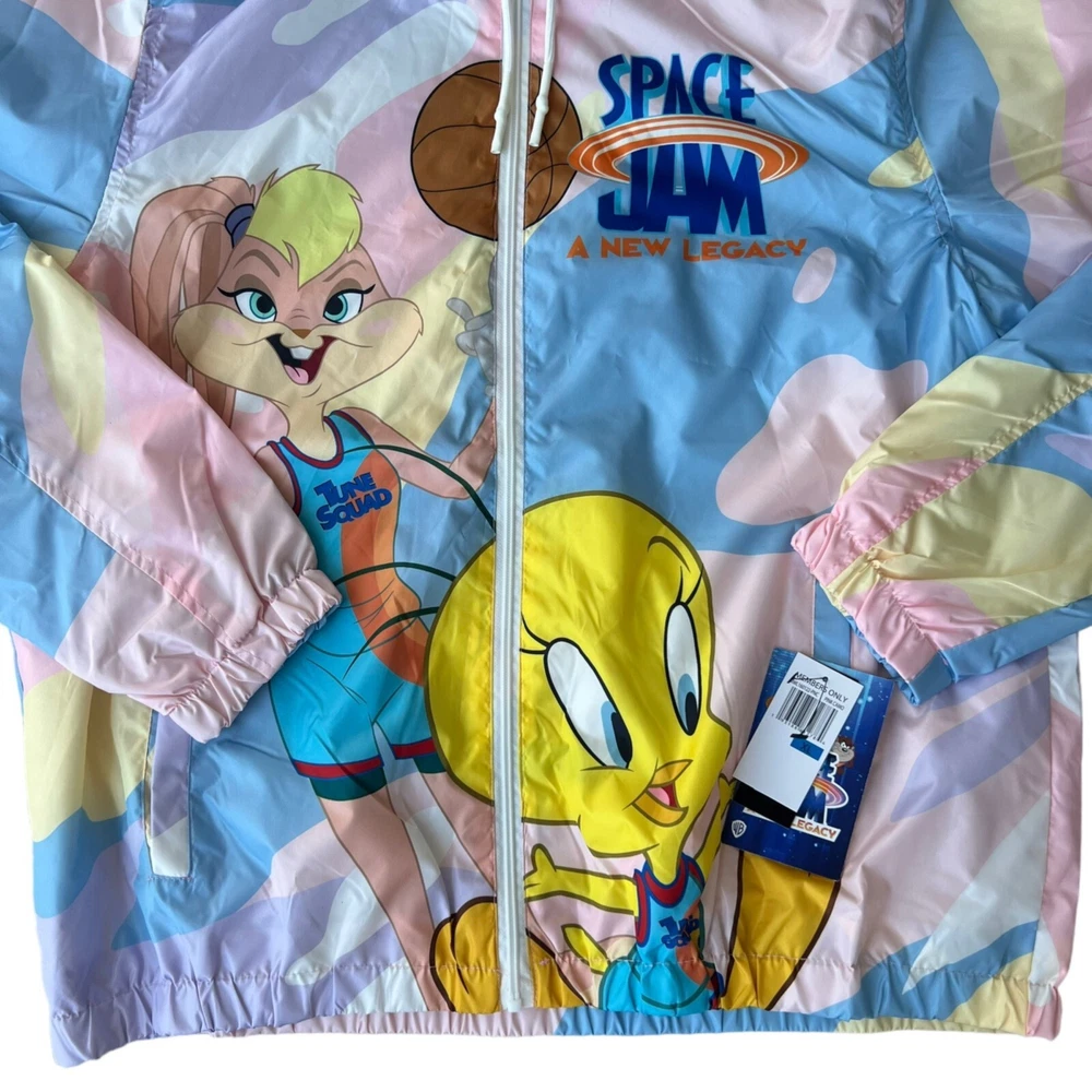 Brand: Members Only x Space Jam A New Legacy Full Zip Windbreaker MWL160122-PNC Color: Pink / Blue / White / Multicolor Gender: Unisex Size: Extra Large (XL) Condition: This jacket is new with tags condition. It is free of any rips, tears, or stains unless otherwise noted below. Please refer to all photos. Ship Time: The item will be shipped the next business day. The Members Only x Space Jam A New Legacy Full Zip Windbreaker is a stylish and functional windbreaker inspired by the iconic movie franchise. This windbreaker features a unique design collaboration with Lola Bunny and Tweety, adding a fun and nostalgic touch to your wardrobe. Product Features: - Full zip closure for easy on and off. - Lightweight and breathable fabric for comfortable wear. - Elastic cuffs and hem for a secure fit and added protection against the wind. - Two front pockets for convenient storage of small essentials. - Hood with adjustable drawstring for customizable coverage. - Bold and vibrant graphics featuring Lola Bunny and Tweety, adding a playful and nostalgic touch. - Perfect for outdoor activities or casual wear, providing wind resistance and style. - Made with high-quality materials for durability and long-lasting use. - Officially licensed Space Jam merchandise, showcasing your love for the classic film franchise.All pre-owned clothing items are cleaned per eBay standards.