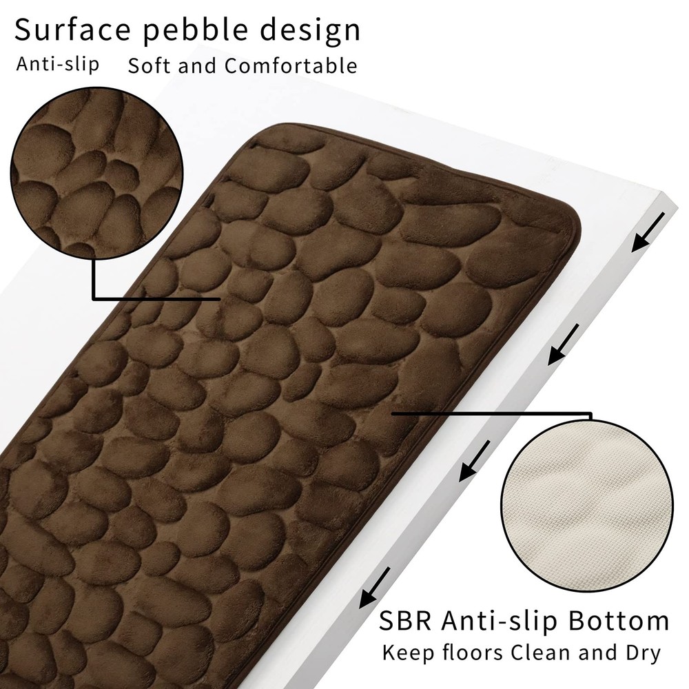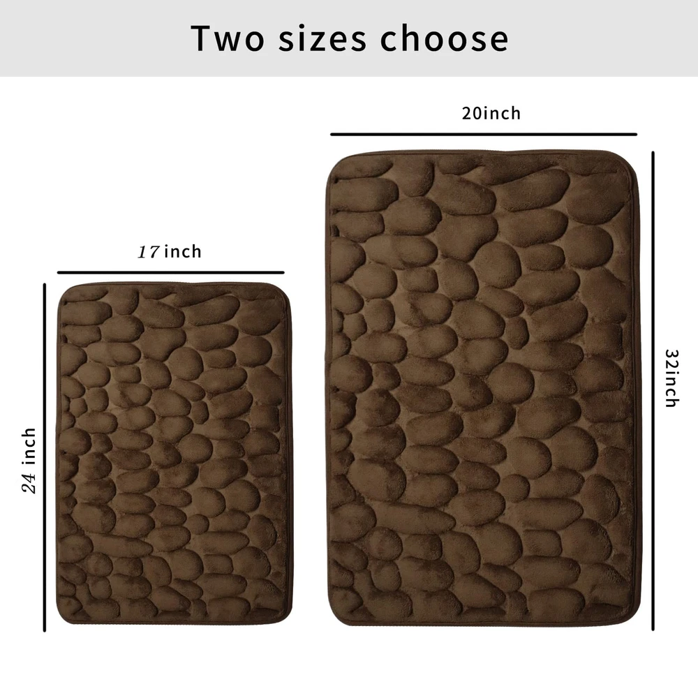 Detail description: Its detailed data is as follows Size: unfolded 17"x 24" Thickness: 0.6" Material: The surface is high-density coral velvet.The interlayer is thick memory foam.The bottom is the SBR non-slip bottom. The bottom is environmentally friendly and the water barrier is impermeable. The surface is three-dimensional pebbles, increasing the comfort of the foot. Please Choose Gropk Bathroom Carpet mat and take the clouds home now. SUPER SOFT & COMFORTABLE- Gropk bathroom mats are high density coral velvet.The interlayer is thick memory foam that soothes tired feet and protects your toes from the cold floor. FAST WATER-ABSORBENT- Gropk bath rugs with soft coral velvet microfiber layer can quickly absorb moisture, make your feet dry immediately, and the water do not stay on the surface of the bath mat, helping to keep your floors clean and dry. ANTI-SLIP & DURABLE-The bottom is a new material SBR non-slip bottom.It is made of high frequency embossing technique.Which is much stronger and durable for long lasting use, unlike other brands where the backing tends to wear and peel off after a number of washes. EASY TO CLEAN- Gropk bathroom mat can be machine-washable, just put the mat into the washing machine with cold water in a gentle cycle.The color of the bath mats will not fade. The Gropk Bathroom mat can be widely used in the bathroom, kitchen, living room, laundry room, hallway, bedroom, balcony, etc.Choose Gropk Bathroom Carpet mat and take the clouds home.