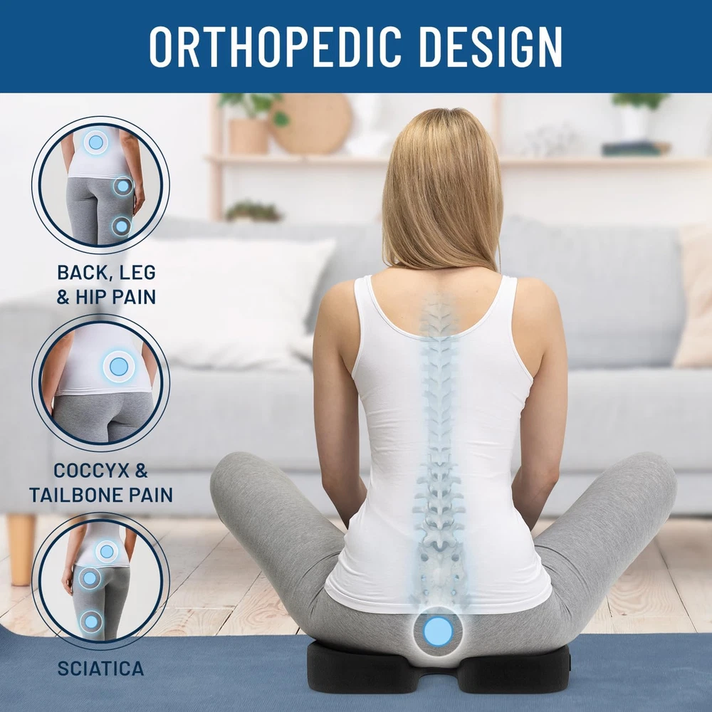 Ergonomic Car Seat Wedge Cushion: Featuring a U-shaped cutout, this truck seat cushion or car seat cushion supports your tailbone and reduces pressure, making long commutes and drives more comfortable; this car seat pillow is a road trip essential Premium Car Pillow for Driving Seat: Experience unparalleled comfort with our memory foam wedge seat cushion, designed to provide maximum support and elevate your driving experience Versatile Wedge Cushion for Chair: Use for cars, office chairs, and wheelchairs, our seat wedge cushion adds height and comfort. Our driver seat cushion for truck drivers and everyday commuters has the optimal amount of cushion for any long drive Durable and High-Quality Cushion: Made with premium materials, our wedge cushion is firm and sturdy, ensuring long-lasting use and reliable support Safe and Easy to Clean: Certified by OEKO-TEX and featuring a non-slip rubber bottom, our cushion stays in place and is safe for health. Machine washable for effortless maintenance Product Description Experience long-lasting comfort with the Everlasting Comfort Wedge Cushion. Lab tested, earning the STANDARD 100 label by OEKO-TEX, every component of our wedge cushion has been certified safe. It’s unique U-shaped design provides custom support when sitting. Using heat responsive technology our advanced thick slanted foam cushion adapts perfectly to the shape of your bottom, providing ideal support, yet retains its shape after each use. Our cushion is made from pure memory foam. Find comfort in any seat with the cushion’s soft exterior, non-slip gel rubber bottom, and portable size. The cushion even features a convenient carrying strap on its side. Great for cushioning hard surfaces such as office chairs, plastic or metal chairs, stadium seats, airline seats, and bleachers. Start living comfortably with the Everlasting Comfort Wedge Cushion.