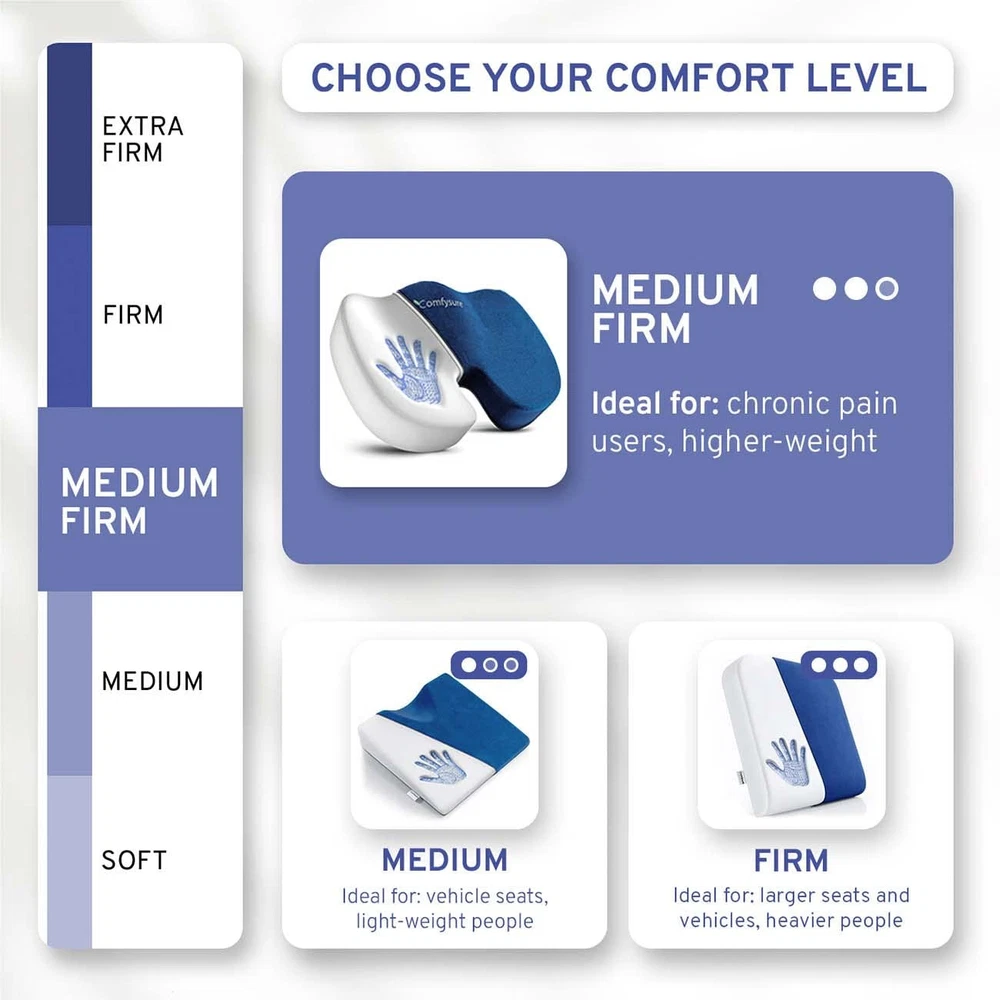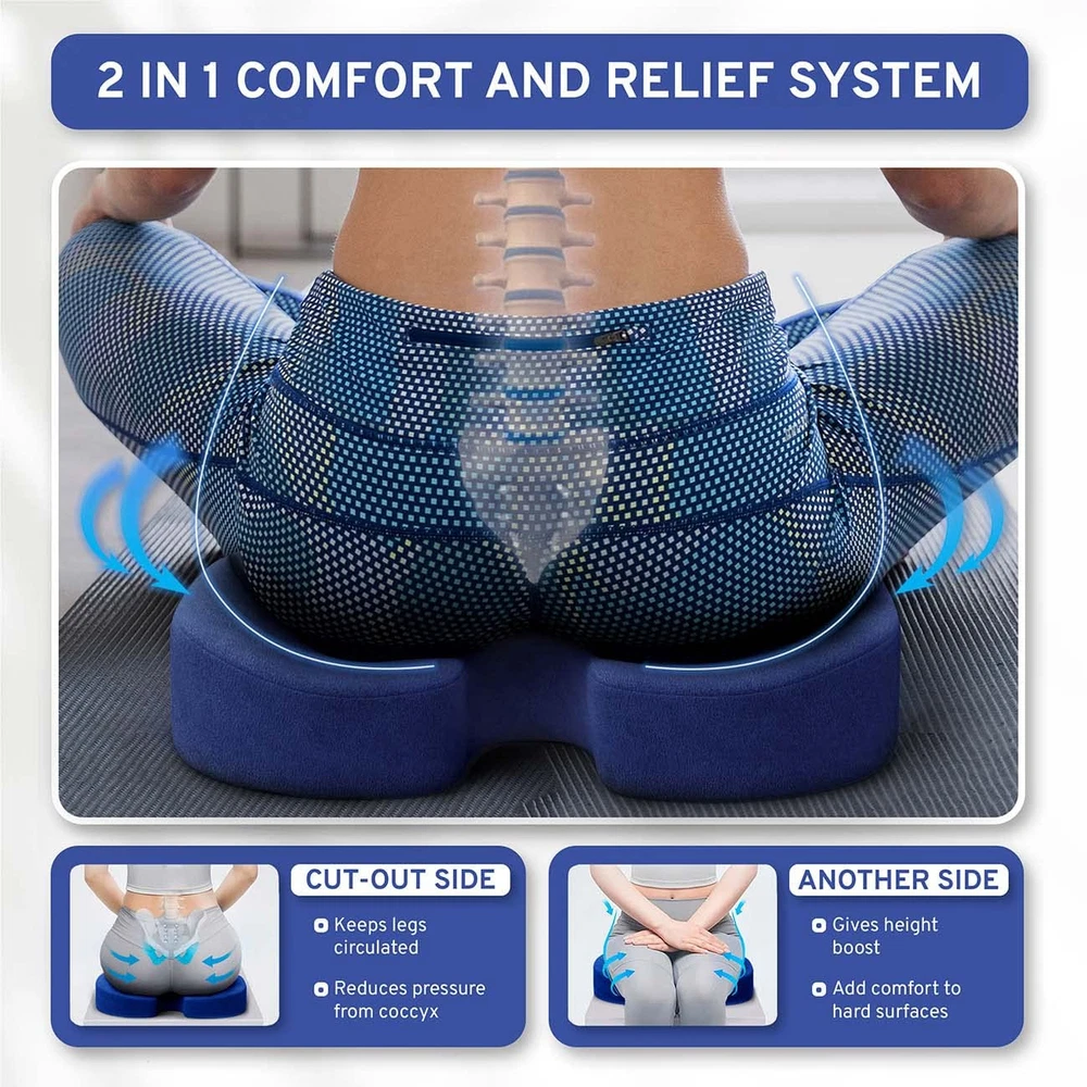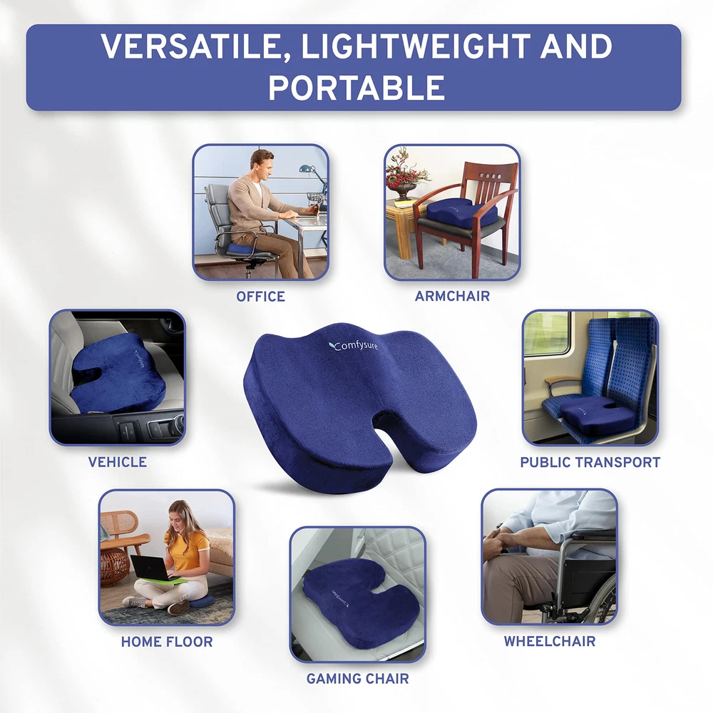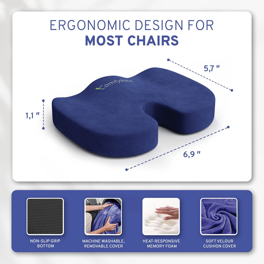 Seat Cushion for Tailbone Pain : The U-shaped seat cushion provides firm support not only for the bottom, tail bone, hips and thighs, but helps the spine, lower and upper back, and posture. Premium Desk Chair Cushion for Long Sitting: This memory foam chair cushion is made from premium materials, the pillow shapes itself according to your body shape, raising the coccyx and evenly distributing weight and improving balance. Orthopedic Tailbone Pain Cushion: Doctor and chiropractor recommended, this orthopedic seat cushion helps obese or overweight people, relieving the pressure and strain from sitting at a desk. Lightweight and Portable Pillow for Chair: Bring the comfort of your perfect tailbone cushion everywhere you go! Whether you’re in the office or spending hours on the road you can sit comfortably. Can be used as a car seat cushion, office chair cushion, or tailbone pain cushion and more. Memory Foam Seat Cushion with Removable Cover: The removable microfiber polyester cover is machine washable for quick and easy cleaning. It keeps the cushion well ventilated, to avoid sweat and smells.