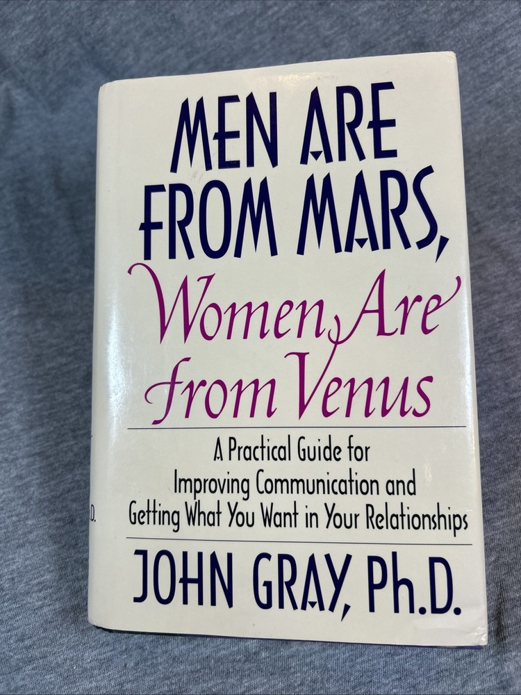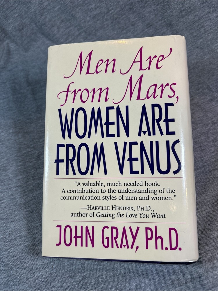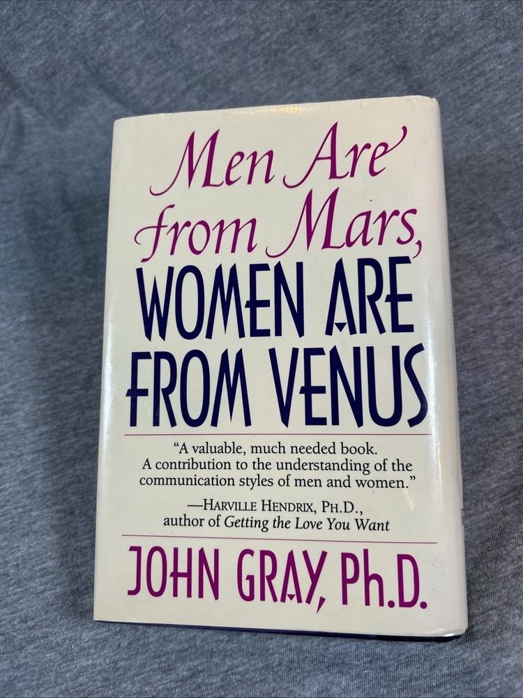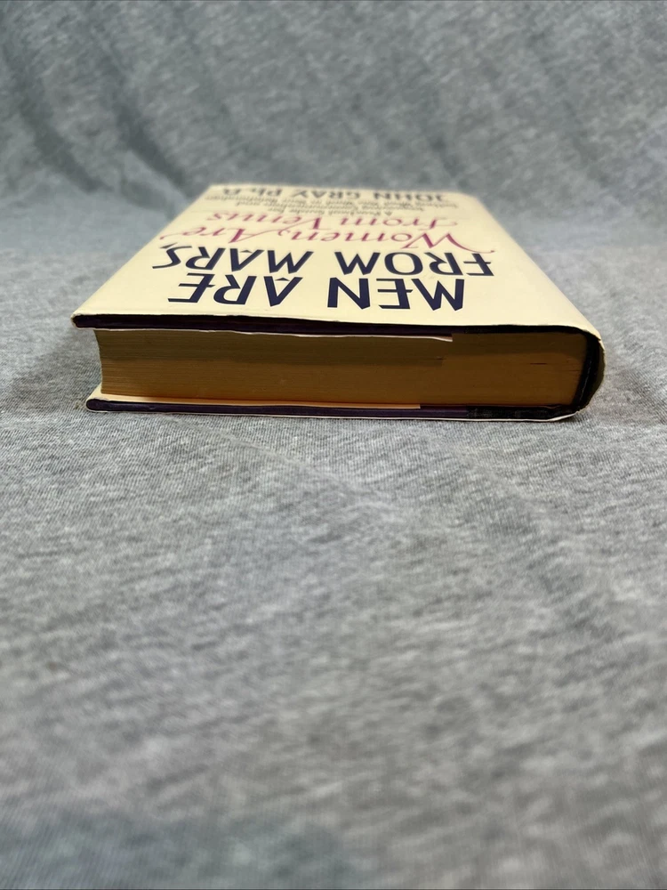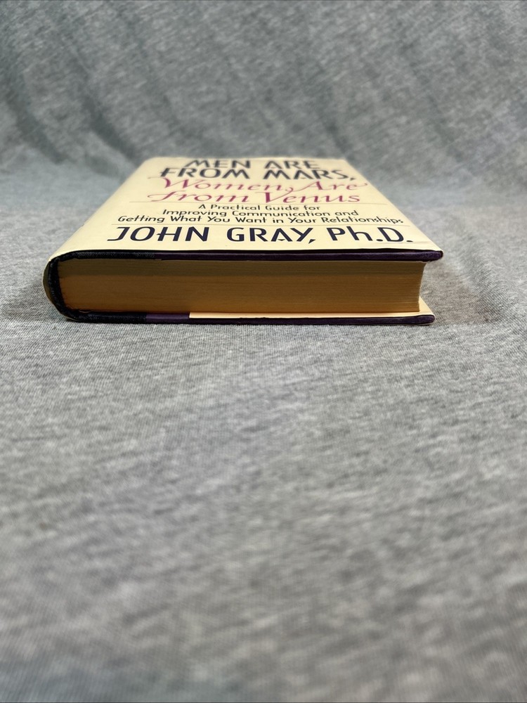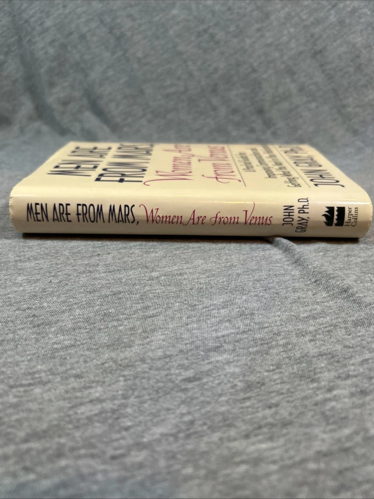 The product is a first edition hardcover book titled "Men Are from Mars Women Are from Venus" by John Gray, published by Harper Collins in 1992. It comes with a dust jacket and is an original print. The self-help book focuses on the topic of relationships between men and women, providing insights and guidance on understanding and improving communication and dynamics between the two genders. This collectible item is a valuable addition for those interested in personal growth and relationship advice.