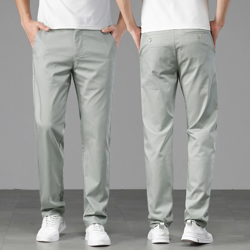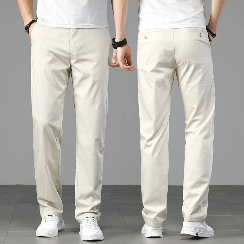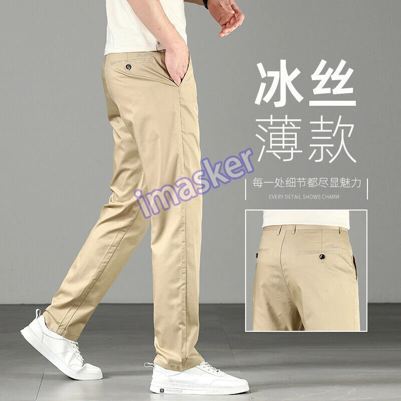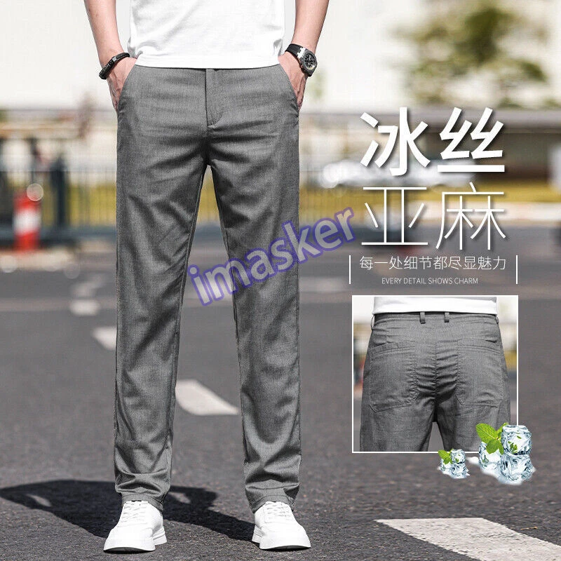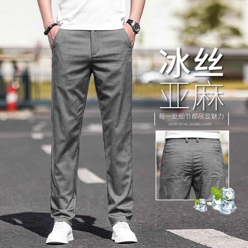 Men Casual Pants Loose Straight Pants Silk Trouser Business Breathable Mid-waist