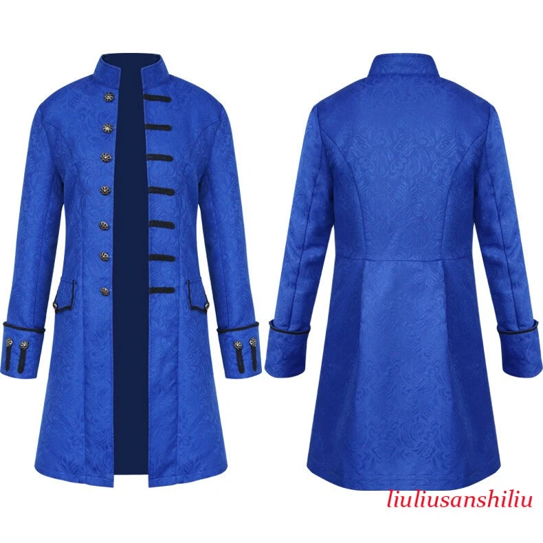 Men Costume Uniform Victorian Frock Coat Gothic Steampunk Long Vintage Tailcoat Color: blue Material:Polyester blend Please note: 1.Due to manual measurement and different measurement methods, there may be little errors about the size, the relevant data is for reference only, subject to the real thing. 2.Due to differences in monitor brightness and colour display, there may be a slight colour difference between the picture and the actual product, which is not a quality issue, the colour of the actual product shall prevail. Shipping: 1.Shipping from China, because it is a cross-country transportation, the time limit can't be ensured to be very stable, about 7-10 working days to arrive in Europe and the United States, 12 working days to most parts of the world. 2.we also can ship by fast shipping (UPS,FedEx or DHL ). Payment: 1.we accept various payment methods. 2.please pay for your order ASAP. Feedback: 1.we will always leave five stars positive feedback to our buyers and hope to receive the same from our buyers. 2.If any complaints,please contact me first, we will do our best to help you solve and let you 100% satisfied, Return: 1.we do accept return in 30 days after receiving the parcel. 2.we will full refund you after receiving items at our warehouse.