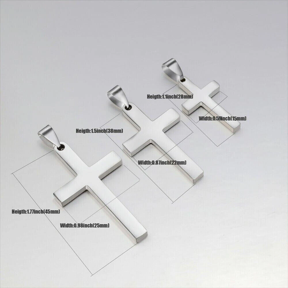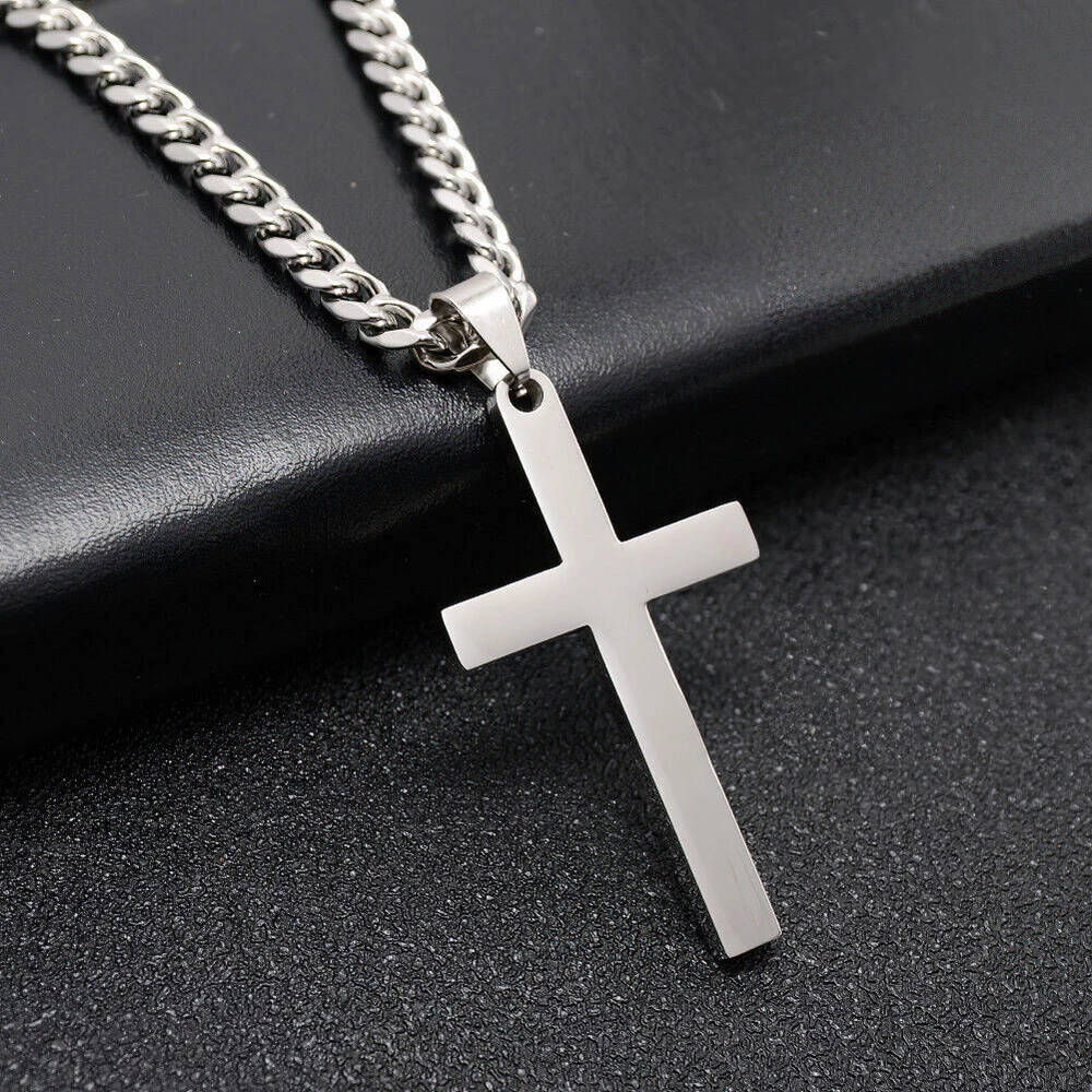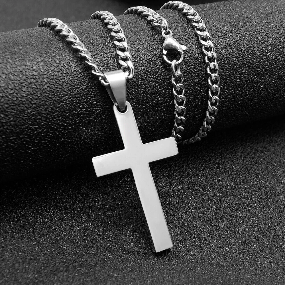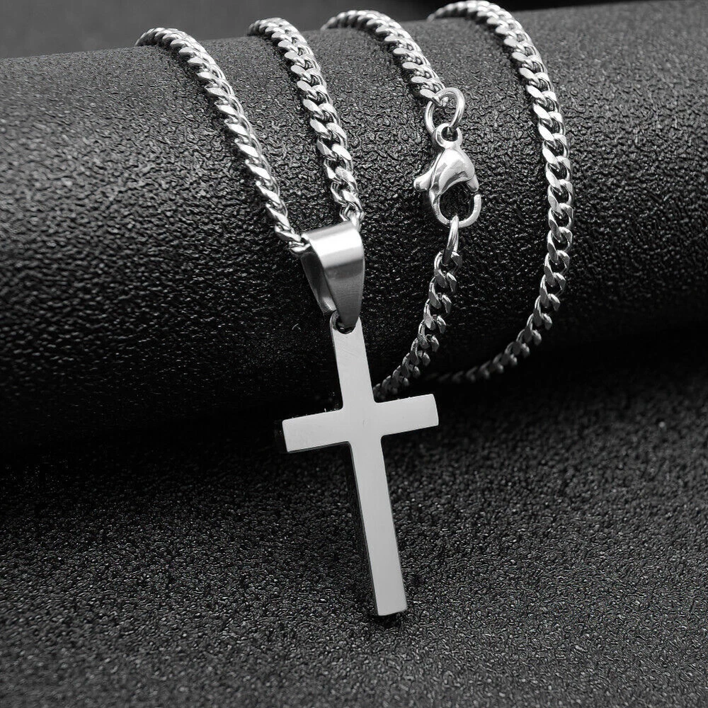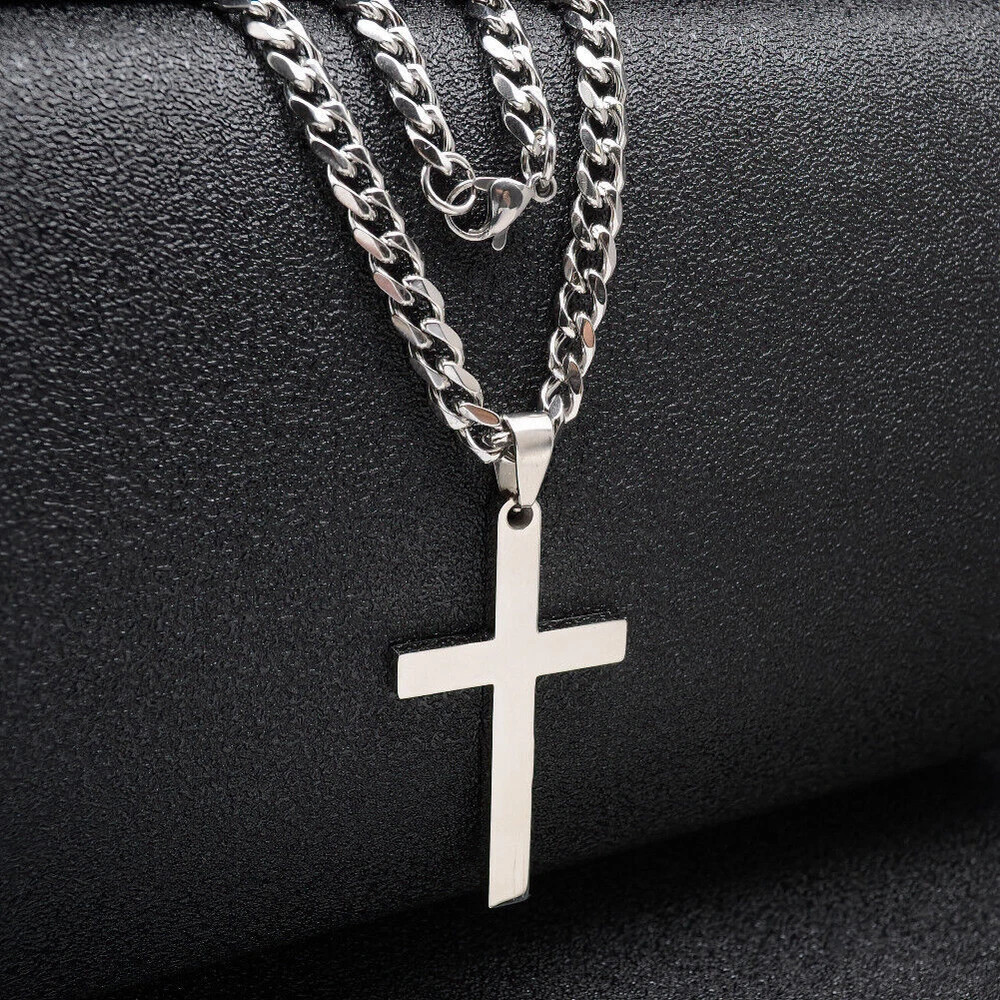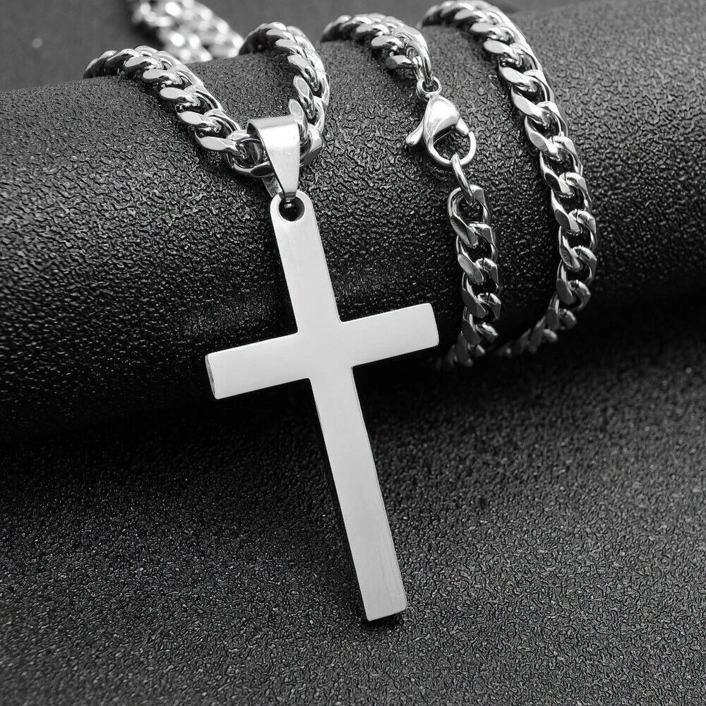 Men Cuban Necklace Stainless Steel Women Boy Cross Pendant Curb Chain Gfit