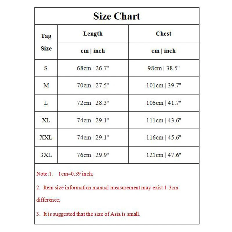 Specifications: 100% Brand new and high quality. Size:S,M,L,XL,XXL,3XL Color: red,light blue,light grey,dark grey,army green Material: Polyester Sleeve length:sleeveless Neckline:crew neck Pattern:Camouflage Season:summer Note: 1.Due to the light and screen difference, the item's color may be slightly different from the pictures. Please understand. 2.Please allow 2-3% error due to manual measurement.Please make sure you don’t mind before you mid. 3.Size doesn’t fit all.Please carefully check size chart and select the size based on your real size. Care Instructions: Wash before wear Cold gentle machine wash Do not bleach Do not tumble dry Drip dry Package:1 pcs men vest Size Chart Tag Size Length Chest cm | inch cm | inch S 68cm | 26.7'' 98cm | 38.5'' M 70cm | 27.5'' 101cm | 39.7'' L 72cm | 28.3'' 106cm | 41.7'' XL 74cm | 29.1'' 111cm | 43.6'' XXL 74cm | 29.1'' 116cm | 45.6'' 3XL 76cm | 29.9'' 121cm | 47.6'' Note:1. 1cm=0.39 inch; 2. Item size information manual measurement may exist 1-3cm difference; 3. It is suggested that the size of Asia is small.