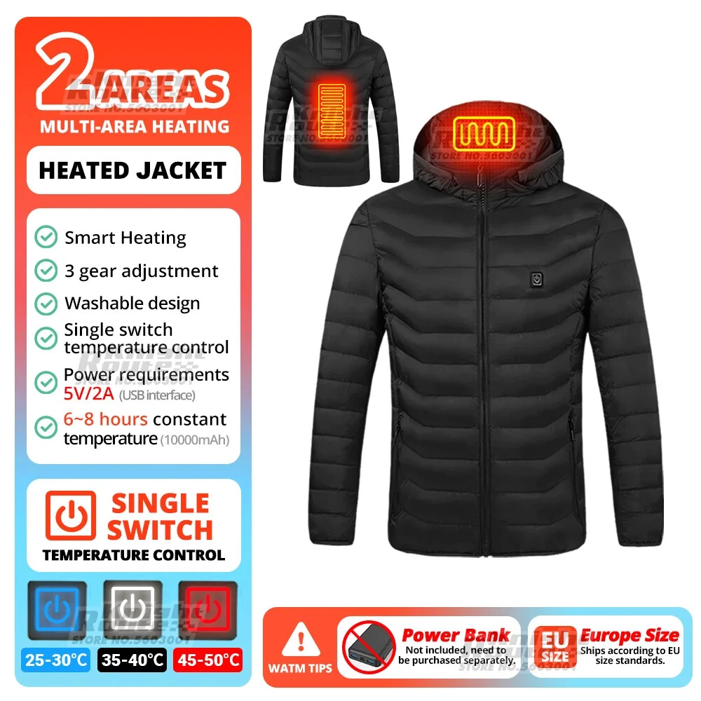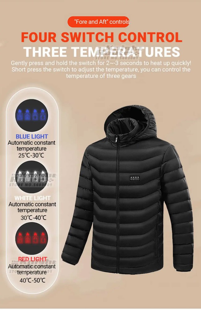 Features: Men Heating Padded Coat USB Charging Solid Color Coat Warm Padded Coat Heating Clothes Notice:For manual measurement, please allow 1-3cm error Size:Please select according to the size table Color:red,black,deep blue Material:polyester Package Includes:a pcs coat Care instructions: Hand washing is recommended Feature: *1.one minute fast heat, dispel cold and keep you warm. *2.With mobile power storage pocket, easy travel. *3.Set the temperature you want to respond to a variety of environments. *4.A button to heating, three stall temperature control, intelligent heating. *5.Fabric 20D nylon plus waterproof treatment. *6.Do Not wring it by hand. *7.General USB interface power supply, longer service life,anti water splashing and washable. *8.The fashion is warm, comfortable and breathable, and it's a good partner for your winter going out. *9.The core heating technology has reached the international CE, EMC, ROHS, IP certification, and all testing certificates are complete. Specification: Temperature Shift(Manual adjustment) Warm:45 ℃ (Red Light) Comfort:40 ℃ (White Light) Energy Saving:35 ℃ (Blue Light) Specifications: Style: Long sleeve cotton coat Material: Polyester Color: Black, Blue Size: Please select according to the size table Power Supply Interface: USB Function: Keep warm, Anti water splashing and Prevent cold How To Use: 1.Take out USB plug. 2.Plug in removable charger. 3.Switch on the removable charger. 4.Press the chest temperature control switch for two second. 5.Red light flashing,means heating automatic. 6.After red light flashes for 5 minutes,then automatic turn to white light,means medium temperature. 7.Manual adjustment has three level,red light means hign-temperature heating continuously. White light means medium heating continuously,blue light means low heating continuously. 8.Press the chest temperature control switch for two second,lights out and stop heating. Package list: 1*Heated Jackets Height: 155-160cm, Weight: 40-50kg, Recommend Size: (EU)XXXS Height: 160-165cm, Weight: 50-60kg, Recommend Size: (EU)XXS Height: 160-165cm, Weight: 60-70kg, Recommend Size: (EU)XS Height: 170-175cm, Weight: 60-70kg, Recommend Size: (EU)S Height: 175-180cm, Weight: 70-80kg, Recommend Size: (EU)M Height: 180-185cm, Weight: 80-85kg,Recommend Size: (EU)L Height: 185-195cm, Weight: 85-90kg,Recommend Size: (EU)XL Height: 195-200cm, Weight: 90-100kg,Recommend Size: (EU)2XL Height: 195-200cm, Weight: 100-110kg,Recommend Size: (EU)3XL Tips: If you are close to the critical value, it is recommended to add a one size