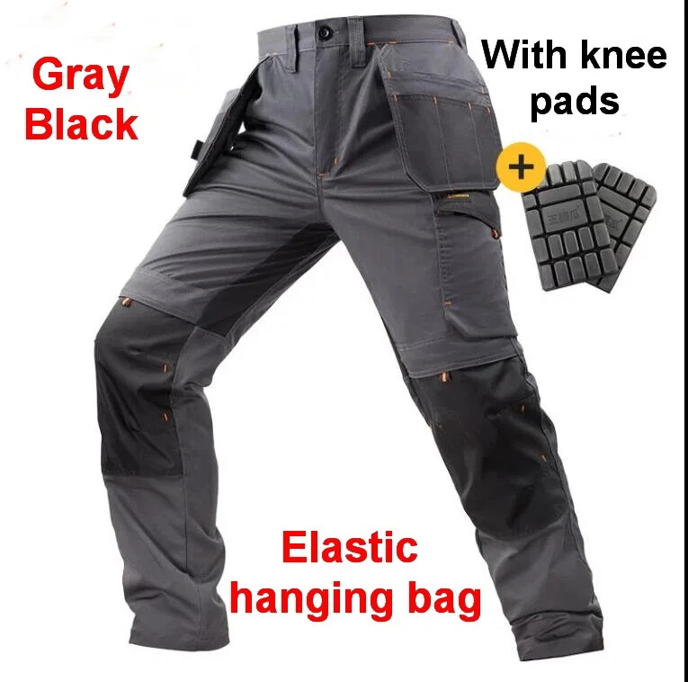 Size M Waist 76-86 cm,Suitable for body weight of 50-60 kg Size L Waist 81-91 cm,Suitable for body weight of 60-70 kg Size XL Waist 86-96 cm,Suitable for body weight of 70-80 kg Size XXL Waist 91-101 cm,Suitable for body weight of 80-90 kg Size 3XL Waist 96-106 cm,Suitable for body weight of 90-100 kg New addition of spring/summer slim workwear pants Newly added upgraded gray black multi pocket water, electricity, automotive, mechanical, and repair workers' hanging bag work pants Hanging bag design, hanging various tools Add 4 outer knee pockets Built in knee pads that can be freely cut and placed in the knee pocket to protect the knees Available colors and styles to choose from
