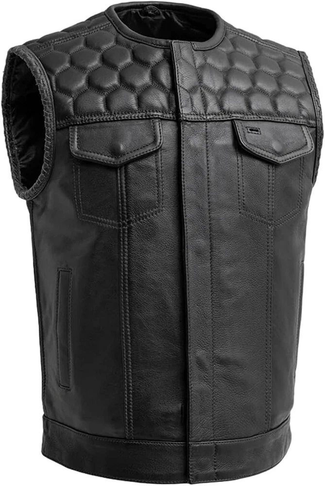 Men Riding Biker Leather Vest - Anarchy Diamond Hunt Club Hornet Motorcycle Vest