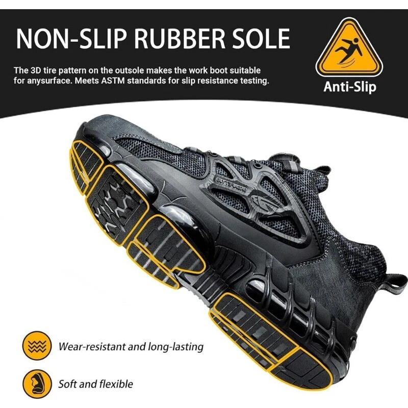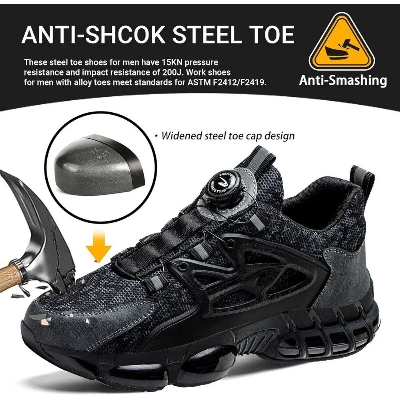 Store Categories Store Categories Other Men Safety Shoes Steel Toe Cap Work Boots Rotating Buckle Breathable Lightweight Product Description 【ANTI SMASHING ANTI PUNCTURE】These work boots can prevent the powerful force of falling objects. These steel toe shoes for men have 15KN pressure resistance and impact resistance of 200J. The Bulletproof Kevlar midsole of these safety boots for men offers superior puncture resistance and provides additional protection for your feet. 【Rotating buckle lazy shoelace】No tie shoe laces has a locking system that holds the laces together, Tighten the laces by turning the swivel buckle, allowing for quick tension adjustments, saving time and effort. 【COMFORTABLE & DURABLE】The thick insole of these women's steel toe boots ensures comfort and allows you to work long hours without fatigue. The insole of these steel toe sneakers also has a sweat-absorbent breathable function. Let every customer enjoy the fun of wearing steel toe boots comfortably. 【NON-SLIP】Durable rubber outsole supports the ankle and anchors the shoe to the foot to ensure safety. The pattern of the sole mimics the anti-skid tire and increases the anti-skid groove. These steel toe shoes have high-temperature resistance, no deformation, and no crack bottom. These steel toe sneakers keep an excellent grip for you in wet and oily conditions. Payment Policy Shipping Policy Returns Policy Payment Policy [ 1. Pyament only can be accepted through PayPal (payment through paypal is safe and quick 2.Payment should be completed within 7 days of auction closing. Or unpaid dispute will be filed for closing auction.An unpaid case will be filled within 8 days. ] Shipping Policy This item is sent from our USA warehouse. Your item will be dispatched in 2 working days after we confirm the payment. It takes 2-5 working days to arrive at US. (Except Holidays) Please contact us if you do not receive the item over 25 days, we will investigate and solve the delivery problem. Please verify your address during checkout. We are not responsible for any wrong or undeliverable addresses. If you do not receive your item in the normal period, please contact us via eBay message first. Returns Policy [ 1.If you’re in any way dissatisfied or any question with your purchase,please feel free to contact us via ebay messages.And will response within 48 hours.We will try our best to solve it for you.We are committed to ensuring that you are completely satisfied with every transaction. 2.Please allow 1-2 business days for us to response. If you do not receive any reply from us,please check your email ensuring your mailbox has not reached full size. 3.Due to some ISP SPAM filter settings, you may not be able to receive our replies; if you have problems receiving our emails, you may need to use a different email account to contact us. 4.If you encounter any trouble. Please give us the opportunity to resolve any problem. We understand the concerns and frustrations you might have and will try our best to resolve the issues. 5.We care about our valued customers and will always try to help you. So if you have any problems, please contact us promptly. ] Copyright © 2023 Dianxiaomi