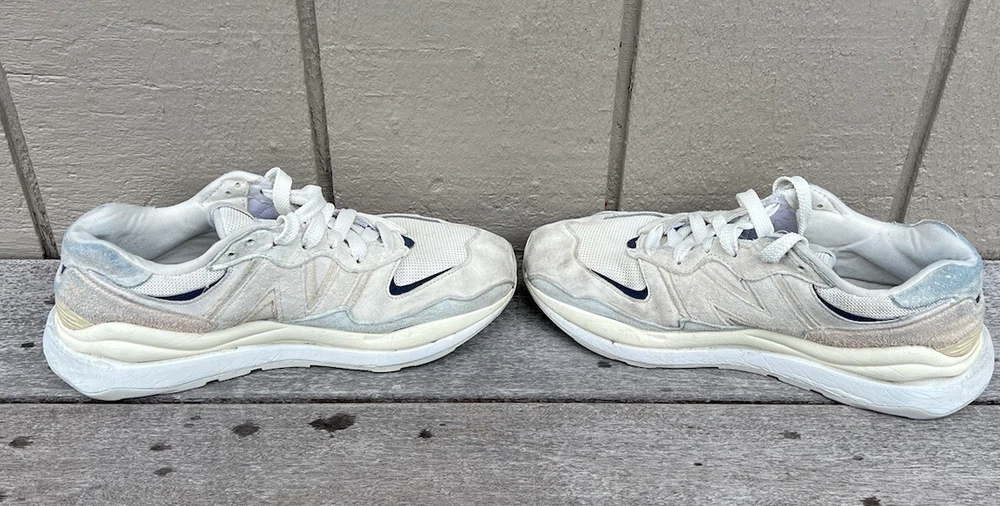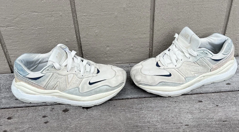 Elevate your sneaker game with these New Balance 57/40 Sea Salt Vintage Rose shoes. With a stylish white color and rose-themed design, these shoes are perfect for any man looking to add a touch of elegance to their wardrobe. The suede upper material and D shoe width provide both comfort and durability, making them suitable for any athletic activity. These shoes are part of the New Balance 57/40 product line and feature a style code of M5740RSA. They are available in size 8.5 and are ideal for any man looking for a high-quality pair of athletic shoes. Whether you're hitting the gym or just running errands, these shoes are sure to make a statement. Great shoes with some previous use on the tennis court. Please see pics before purchase