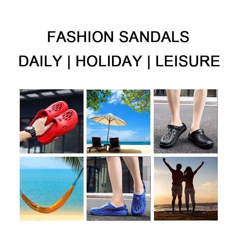 Men Women Garden Shoes Clogs Unisex Summer Hollow Slippers Fashion Outdoor Breathable Casual Couple Beach Sandals Black Big Size for Zapatos Hombre Soft Bottom Slides Thick Platform EVA Anti-Slip Home Slipper Trendy Lightweight Men Sandals Non Slip Men Slides Shoe Casual Outdoor Beach Slippers And Sandals For Couple Product Description: 100% brand new and high quality product. Convenience To Use: These slip on clogs are easy to take on and off, while being extremely fashion and the enhanced heel strap fits perfectly to protect your feet. Comfortable and stable: The garden clogs shoes feature reliable cushioned comfort, a sporty design,with a color and style for every personality. Breathable: The unique design of the garden clogs shoes upper can effectively accelerate air circulation and keep the sandals dry. Hollow Out design, more breathable, favorable foot health. Non-Slip Soles: EVA Non-slip sole provides great grip during walking and movement, and the profile sole ensures a high level of operating comfort and prevents your foot from slipping. Lightweight And Durable: These Clogs for men and women feature lightweight and comfort the material made from Ethylene Vinyl Acetate helps them be durable with time . Occasions: Casual style perfects for all season and occasions, Suitable for many outdoor and indoor activities, as a house slippers or sandals, home uses, garden, beach entertainment, shower, swimming pool, gym, nurse shoes, shopping, bathroom, hotels, holiday or just have a walk with dog etc . Widely Use: Waterproof and washable. Perfect for all scenarios and all seasons you need. You can use them at home, indoor, outdoor, bathroom, spa, gym, swimming pool, beaches, vacation, holidays, water sports etc. It is not only easy to clean and carry, but also let you more stylish with your couple. Product Specification: Shoes Type: Slides Applicable Place: Indoor Season: Summer Upper Material: EVA Fit: Fits true to size, take your normal size Insole Material: EVA Lining Material: NONE Item Type: Slippers Fashion Element: Platform Department Name: Adult Outsole Material: EVA Heel Height: Flat (≤1cm) Style: Novelty Pattern Type: Geometric Summer Shoes: Slippers Fashion Slides: Beach Sandals Beach Shoes: Beach Slippers Black Sandals: Sandals Men Flip Flops Men: Mens EVA Sandal Men Sandals: Slippers Men Summer sandals: Designer Sandals Sandalias Hombre: Plastic Shoes Big Size: 45, 46, 47, 48, 49 Size Chart: EU Size 35 = Foot Length 22.5 cm EU Size 36 = Foot Length 23 cm EU Size 37 = Foot Length 23.5 cm EU Size 38 = Foot Length 24 cm EU Size 39 = Foot Length 24.5 cm EU Size 40 = Foot Length 25 cm EU Size 41 = Foot Length 25.5cm EU Size 42 = Foot Length 26.0cm EU Size 43 = Foot Length 26.5cm EU Size 44 = Foot Length 27 cm EU Size 45 = Foot Length 27.5cm EU Size 46 = Foot Length 28.0cm EU Size 47 = Foot Length 28.5cm EU Size 48 = Foot Length 29cm EU Size 49 = Foot Length 29.5cm Package Includes: 1 Pair of brand new sandals. NOTE: Due to manual measurements, please allow slight measurement deviations. Due to the different display and lighting effects, the actual color of the item may be slightly different from the color displayed on the picture. Return Policy: We understand that sometimes an item may not turn out to be just what you need. Refund or replacement request is available only the requests within 30days after parcel received & returning the item as the same condition as received. Please contact us before returning items and we will provide the shipping address. Do not send back the products without communication, thanks for good communication. Shipping Policy: We ship to your eBay address Only Please check your shipping address carefully before checkout, it can't be changed once order completed. We will ship your order within 1 to 5 days ASAP after receive your cleared payment. Generally, it will take 8-15 business days to US. If you don't get your item in time, please do not hesitate to contact us via eBay message. Our customer support will check the order status for you ASAP. Payment Method: We accept eBay payment method only We will ship out your item ASAP after receiving payment. Contact Us: We are a reputable seller, best service, great price, good quality, loved by many buyers. If any product questions or other problems, please do not hesitate to contact us via eBay message. We will reply within 24 hours ASAP. Good communication is very appreciated. Hope we have a good cooperation. Feedback: If you are not satisfied for any reason, please do not hesitate to contact us. We will do our best to solve your problem. If for any reason you are not satisfied please contact me before leaving feedback. Please don't hurry to leave negative/neutral feedback. If you are satisfied with the product you received, please leave us 5-star positive feedback it will encourage us to continuously improve our products and services. Our goal is 100% satisfaction for every customer and resolves any problem for you and always leave positive feedback to all our customers. Thank you for Visiting our store :)