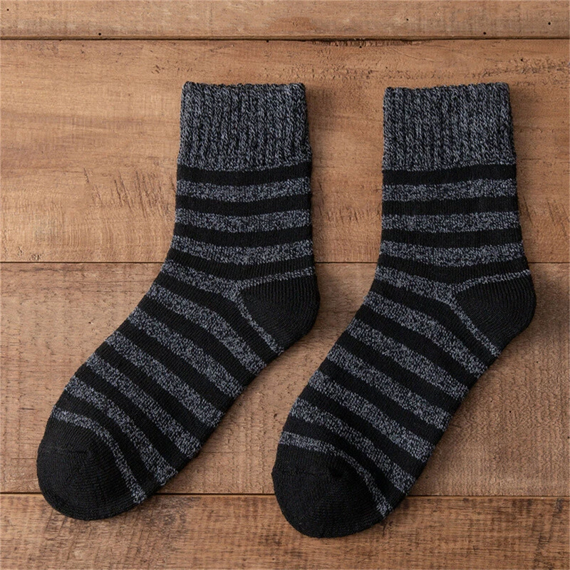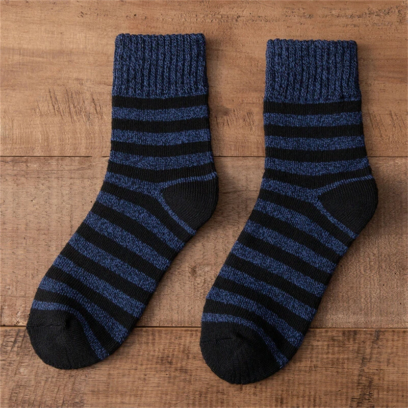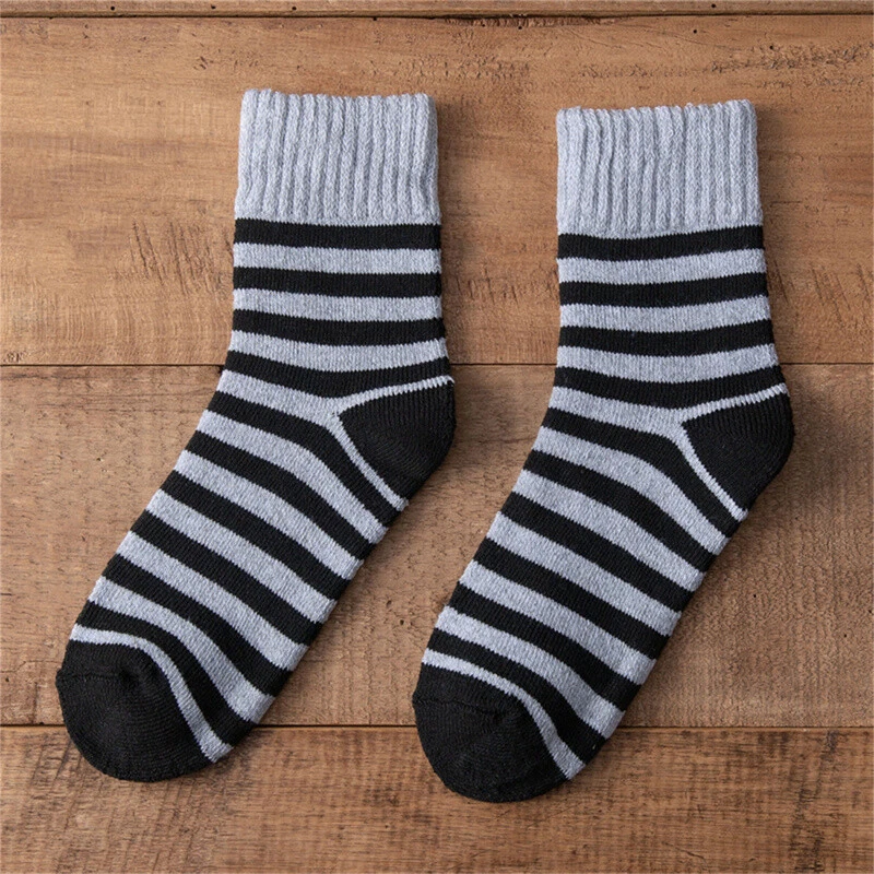 Men Super Thick Solid Sock Striped Wool Socks Against Cold Snow Winter Warm Sh^a