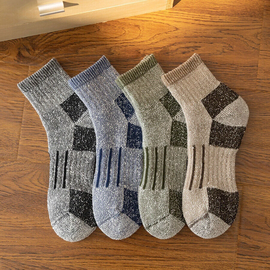 Color: Multicolor Occasion: Casual Pattern: Check Size Type: Regular Features: Breathable, Moisture Wicking, Thermal Theme: Classic Style: Outdoor Socks Material: Wool Blend Brand: Unbranded Performance/Activity: Hiking, Walking Country/Region of Manufacture: China Type: Socks Toe Style: Full Toe Sock Length: Mid Calf Number in Pack: 4 Pairs Season: Winter Department: Men