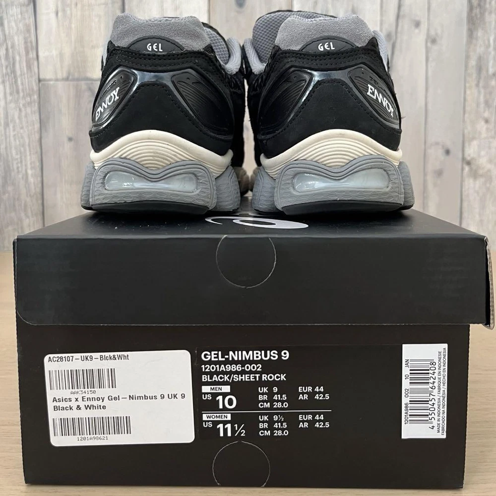 Men US 10.0 ENNOY × Asics Gel-Nimbus 9 Black 207492