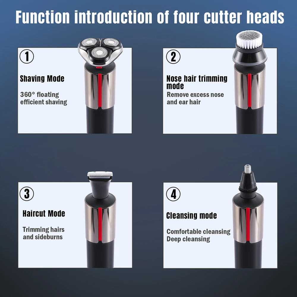 Men USB Electric Shaver Beard Shaving Wet/Dry Trimmer Rotary Razor Rechargeable Feature 3-BLADE HEAD: The Shaver has a three-dimensional floating 3-blade head that rotates 360° and automatically adapts to changes in facial contours, sweeping across difficult-to-shave areas and reducing beard residue. ULTRA-THIN BLADE MESH: The Electric Shaver adopts ultra-thin blade mesh, which reduces the friction with the skin during shaving, reduces the risk of skin damage and makes the shaving process more comfortable. POWER VISUALIZATION: The Rechargeable Electric Razor has a visual design that clearly shows the remaining power usage, so you don't have to worry about running out of power during shaving. ULTRA-LONG BATTERY LIFE: The Travel Shaver has a built-in high energy density lithium battery, which can be used for 90 minutes after 2 hours of charging, without frequent charging. Removable Heads: The Rechargeable Shaver is equipped with 4 cutter heads, which can be used for shaving, haircutting, facial cleansing, and cleaning nose hairs respectively, to meet your various needs of use. Specification Voltage: 5V Power: 5W Charging Time: 2h Battery Life: 90min Color: Gunmetal Material: ABS Size: 165x60x41mm/6.5x2.36x1.61in Package Includes 1x Shaver 1x Face Cleaning Brush 1x Nose Hair Trimmer 1x Hairdresser 3x Limit Combs Payment Delivery details Terms of sales About us Contact us Payment Payments: Paypal, Google Pay, Visa, Master Card, Amerian Express, Discover. Delivery details All items are shipped from US warehouse located at NJ . We ship to your eBay or Paypal address. Please make sure your eBay or Paypal address is correct before you pay. Terms of sales Free return About us Pls contact our customer service firstly if have any problems , we will help to solve the issue, and could offer free return service for full refund or free replacement after confirming. You can buy from us with confidence Contact us If have any problems, please feel free to contact us.