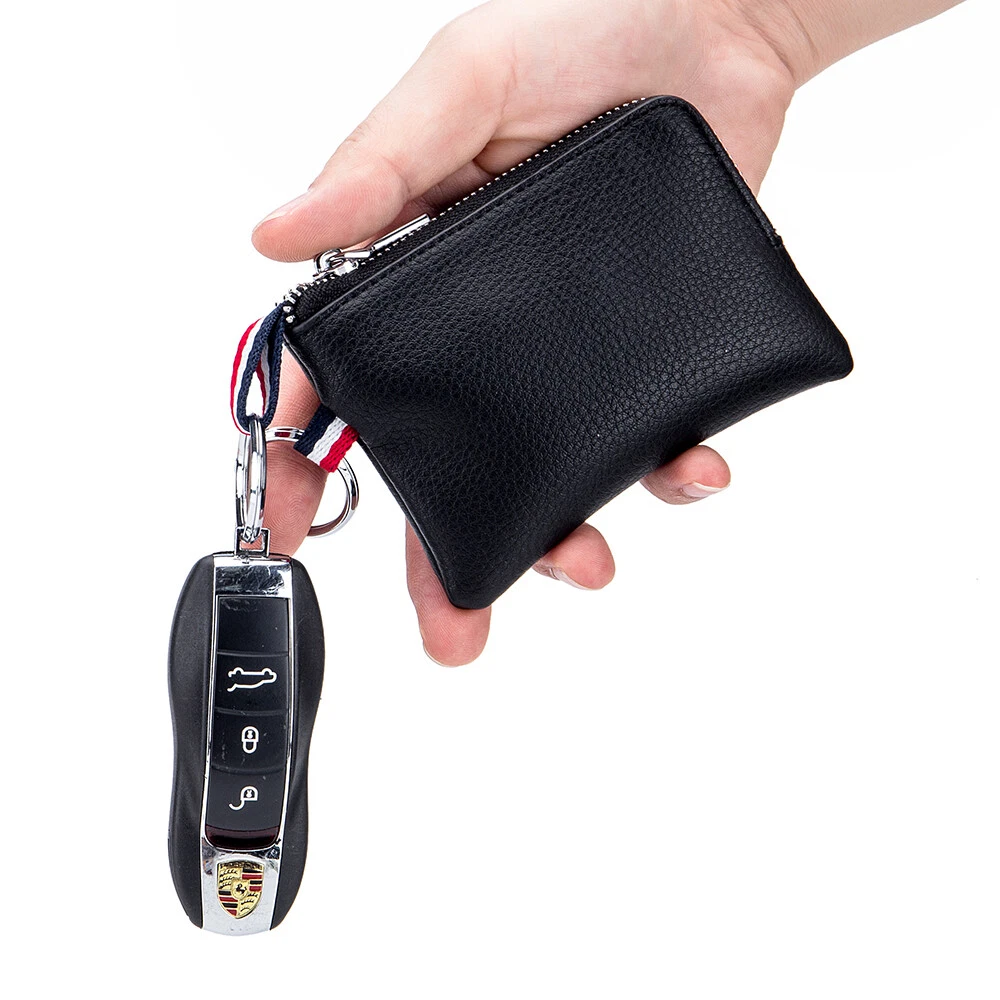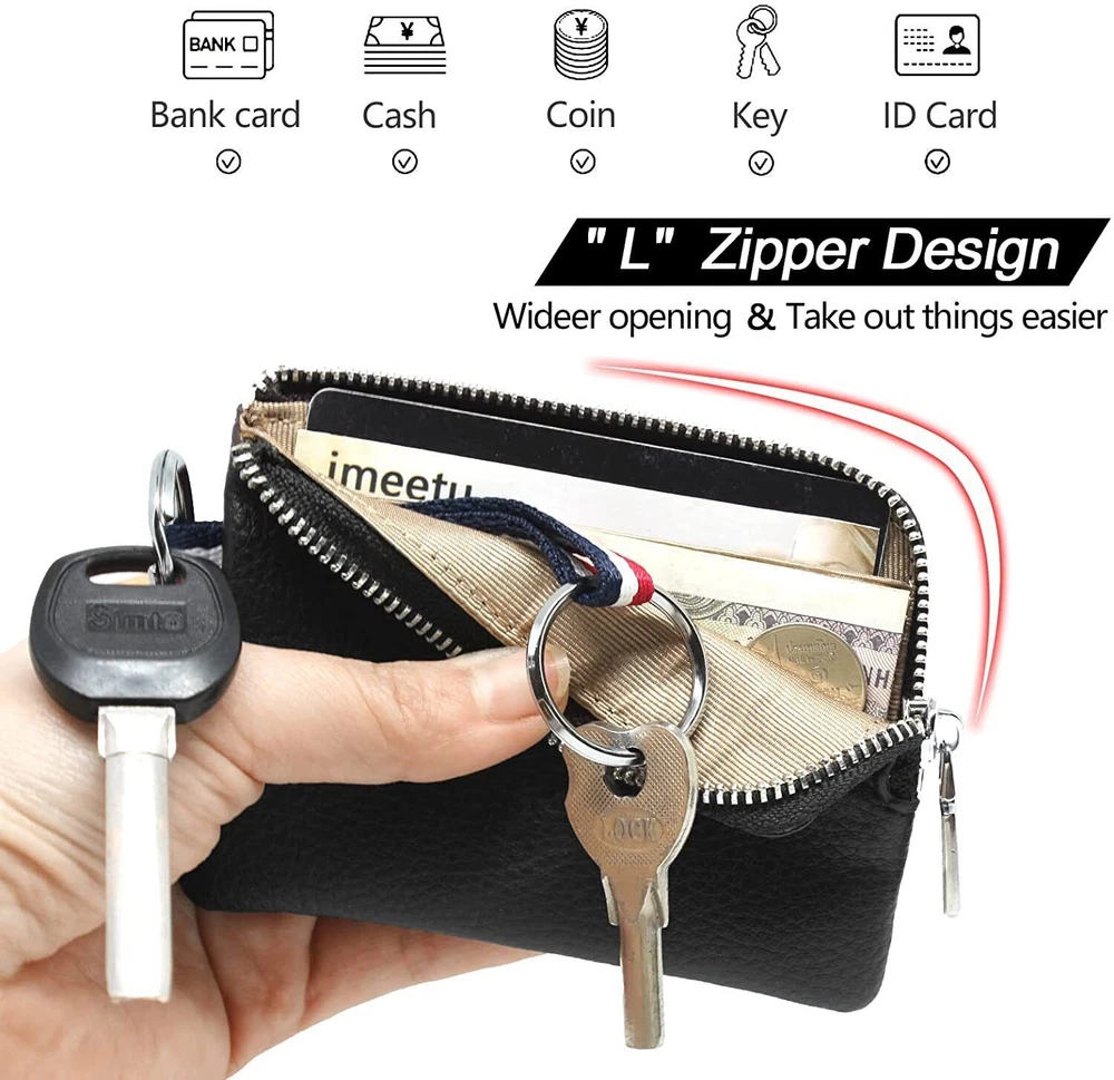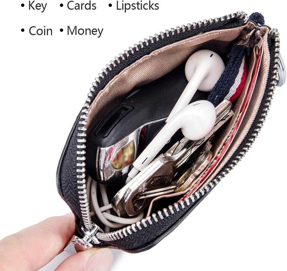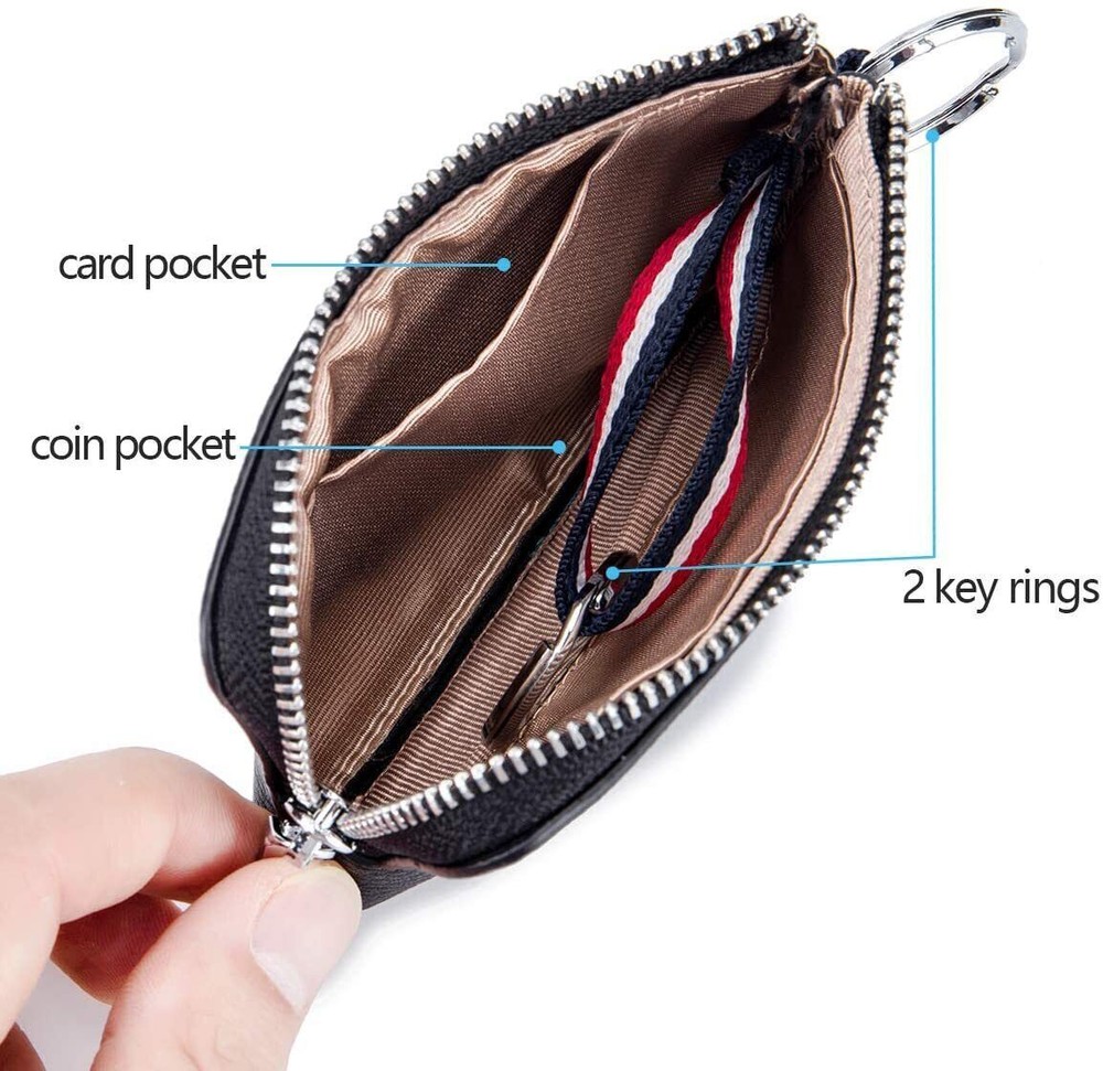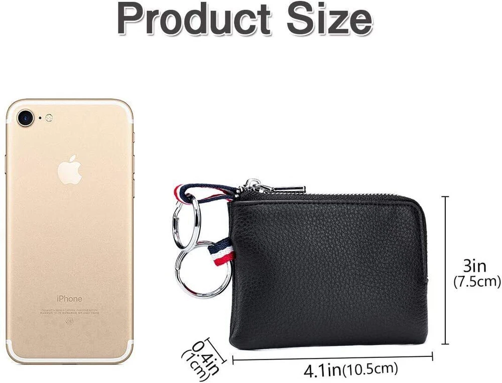 Feature: Premium Leather and Dual Keyring Design: The coin purse is made of genuine cowhide leather, soft and durable. Designed with convenient 2 key rings which can attach more keys, and no more worry about losing them. "L" zipper, wide opening, you can easily take out what you want. Multifunctional Wallet Meets all Your Needs: Mini wallet has 1 card pocket and 1 coin pocket. Not only as a coin purse but also as a pouch for bills, change, earphones, credit cards, driver's license, car and house keys, etc. Perfect Size to be Carried Around: 4.1”(L) x 3”(H) x 0.4”(W). The slim size and light weight allow you to hold the coin pouch in your hand or hang it on your fingers, and you can also put it in your backpack or jacket/pants pocket freely. Heartly-selected Gift: Designed with classic colors and style, the change purse fits men and women of different jobs on every occasion, so it's also an ideal gift for Christmas, birthday, or Valentine's day. Package Included: 1 x Men Small Wallet without box