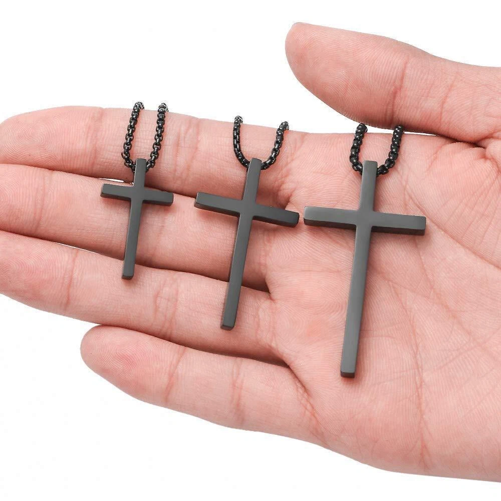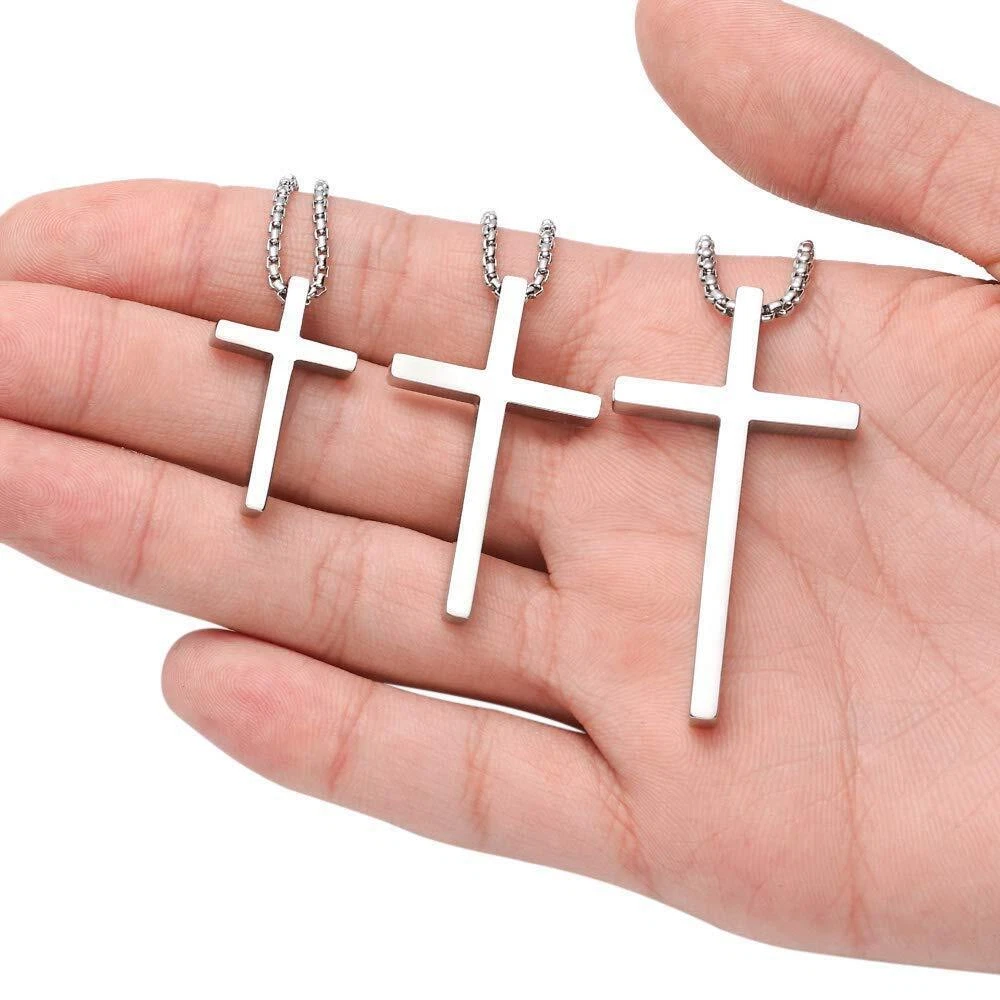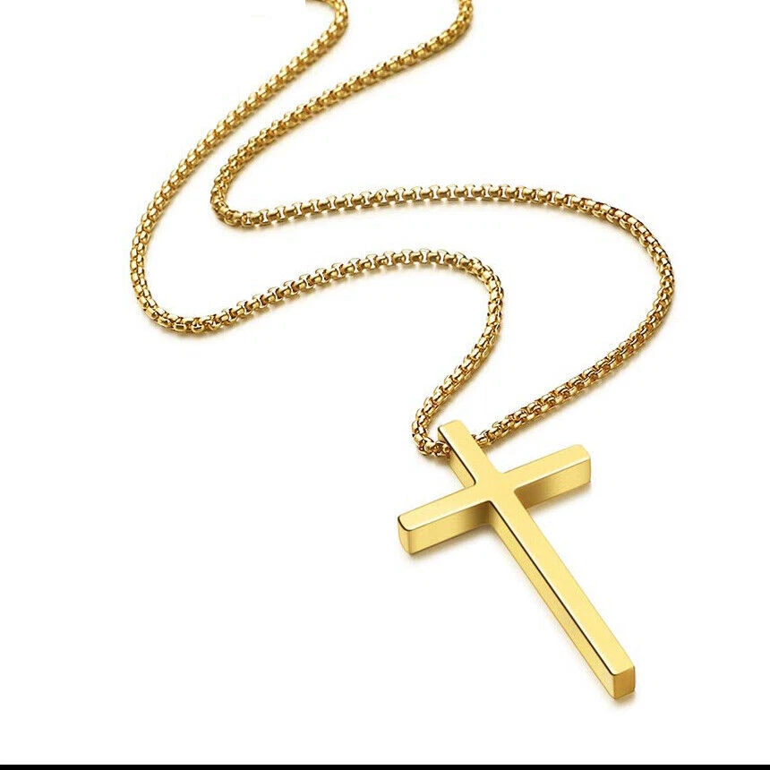 Men Cross Necklace Silver Gold Stainless Steel Boy Plain Pendant Cuban Chain