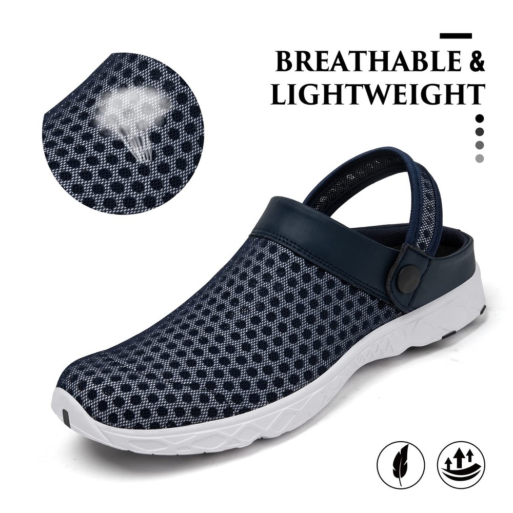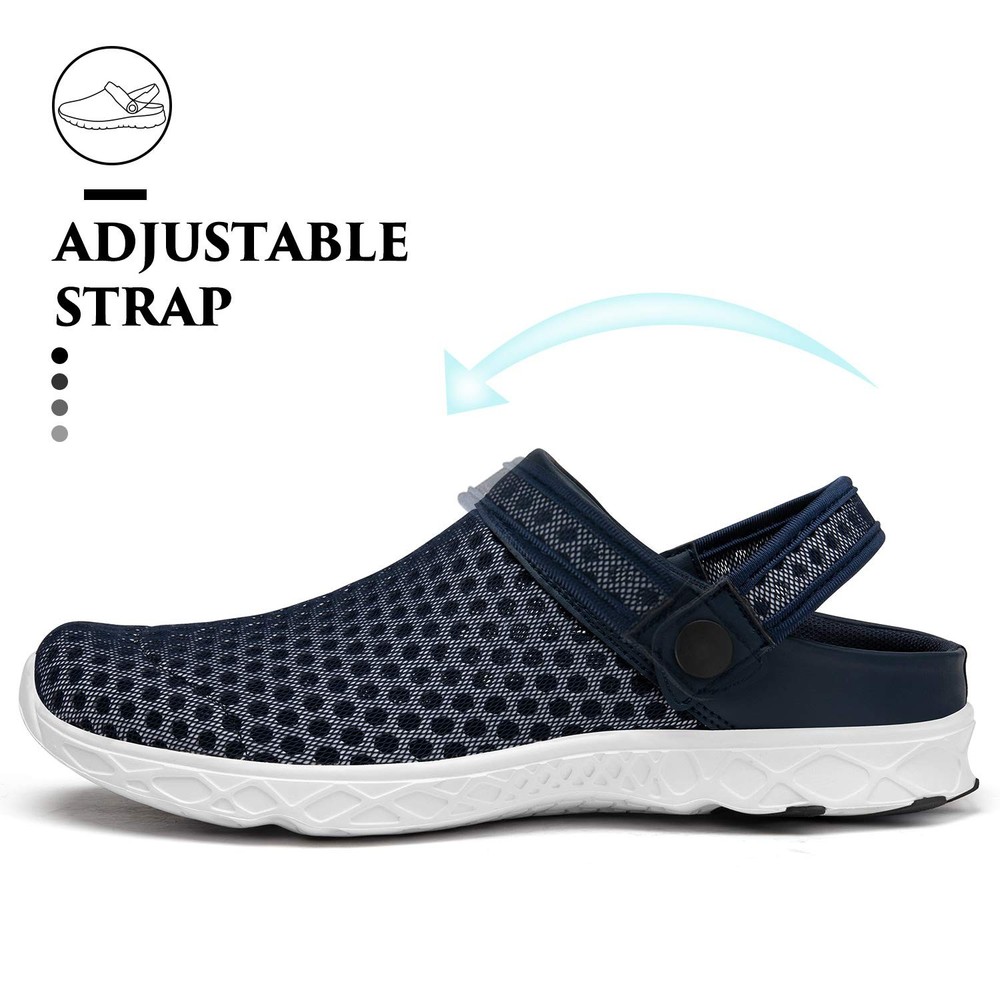 is one of the brands of our company, our design and R&D team continuously produces new series of shoes to satisfy customer's expectation. If you have any question about the product, please contact with us. Suitable for indoor and outdoor. Ideal clog shoes for beach,swimming, shopping, walking, jogging, running, driving, playing, water park, water sports, kayaking, fishing, traveling, hiking, gardening, bathroom, pool and so on. Breathable: Made by drainaging ports and mesh, the vamp shed water easily and dry quickly. Ultra Lightweight: Light Material reduce the burden of your feet. Comfortable: Soft insole and adjustable strap for best fit. You can also wear the it as sandals or slippers if you want. Non-Slip & Quick Dry: TPR outsole with drainage holes has a good traction, flexibility and high ability of abrasion, and shed water quickly. Occasions: Suitable for casual and sport, indoor and outdoor, garden, yard, bathroom, beach, pool, walking, jogging, driving, fishing, boating, kayaking, wading, cruise, vacation, long-haul flight etc.