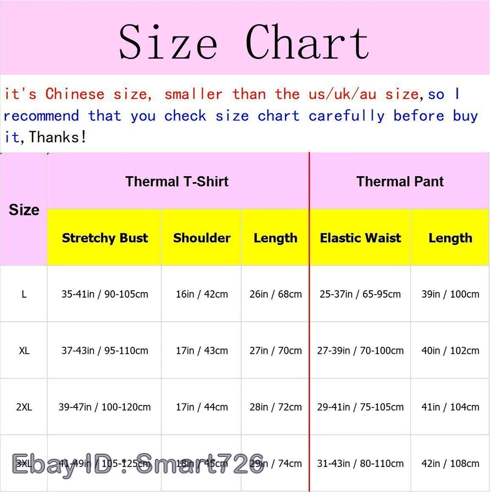 Me n Wool Long Johns Thermal Underwear Nightgown Base Layer Set Shirt Pants Description: Color: Black , Gray,Light Khaki,Navy Blue Size:L-3XL Materials : Polyester We are very honest seller from China,All the items are in stock and ship from China.we check each item carefully befor package it,we assure every buyer will be 100% happy with us,please enjoy your time for shopping from us! Shipping We ship items by China post registered airmail,the handing time is 1-2 working days.all the packages have a tracking number. Please contact us first if you don't receive the items in time,we will check for you,and every year there are a lot of packages holded in Customs and post office During May's Day,October and Christmas. 11-22 working days to US, UK,AU,Europe 20-35 working days to CA,Germany,France,Italy 35-45 working days to Russia,Brazil,Israel Feedback we hope every buyer are 100% happy with us and give us all 5 star positive feedback,we will give best feedback to you at the same time,if you are not happy or want to give us bad feedback,please contact us first,we can help you,and resolve all the problem. we appreciate your good feedback we will give all the buyers best service we will help you to resolve all the problem Return policy We check all the items before package,if any problem you don't want it,please contact us at anytime,we will help you. we accept return and refund,or exchange as free. the payment will be refund to your paypal account include shipping fees,Please be aware the return shipping cost will be charged on your side. 30 days returning time,just take it easy Full refund or Free exchange the buyer pay returning fees ploaded in 1-3 working days by our post office,so you can track it on ebay or the Chinese post office websit,please contact us for help if you still don't know how to track it,we will track it for you. Q: I have not received my items for a long time,what happend ? A:There are some reasons for this problem,Such as the bad weather,the vacation,and the Customs Strengthen security check, or the items had been hold in the post office,so please contact us first,we will check for you. Q: How to return the items?and Who will charge the fees ? A:please contact us first before you return the items,we will help you,and Please be aware the return shipping cost will be charged on your side ,and The re-send shipping cost will be charged on our side. please give me a message after you send it back,we will help you. Q: Do you combine the shipping fees ? A:Sorry,we don't combine the shipping fees,but we can give you some discount when you purchase more items from us.thanks Questions and Answers Q: How to check the size ? A:Measure your foot length,and then check it in the table,to choose the right size,the error is in 0.5-0.8cm. Q: What should I do when I receive the wrong color or size items ? A:please don't worry about this,and please contact us , we can help you to resolve this problem, Q: Do you have a tracking number and How to track it ? A:Yes,we have a tracking number and add it to ebay websit in 24 hours,the tracking info will be u