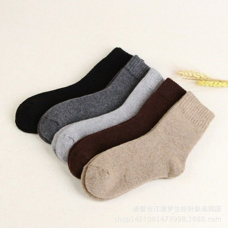 REMIUM MATERIALS - Our wool socks are made of high quality wool blended fabric, which is very soft, durable and doesn't deform easily. Our socks will provide you with a good wearing experience. COMFY & BREATHABLE KNIT WOOL SOCKS - The soft fabric blend is skin-friendly, itch free, breathable, durable, moisture wicking and odor-fighting, keep your feet warm, dry and comfy all day both indoor and outdoor. FULL CUSHION - The full cushion socks are more warm and thick. which can help you better resist the cold in the cold winter. It can absorb shock effectively and protect your feet. Whether in daily wear or outdoor sports, It can make you feel warm all day in cold winter. WARM & MULTI-FUNCTION - Fluffy wool lined inside makes it super soft and comfortable, keep your feet and toes warm all day. Fashion color can be easily matched with your outfits. Our high quality wool men's socks are suitable for different situations. EXCELLENT GIFT CHOICE - The wool socks are warm and decent. It is perfect for Christmas or daily wear, so this is a perfect present for guys or men, you could choose it for your friend or your family as Christmas gift. General Specs Gender Men Color 5 Colors Season Spring, Summer, Fall,Winter Length 26-28cm/10-11inch Size US Size 7-11, EUR Size 38-43 Net Weight (g) 50g Quantity 5-Pack random colors
