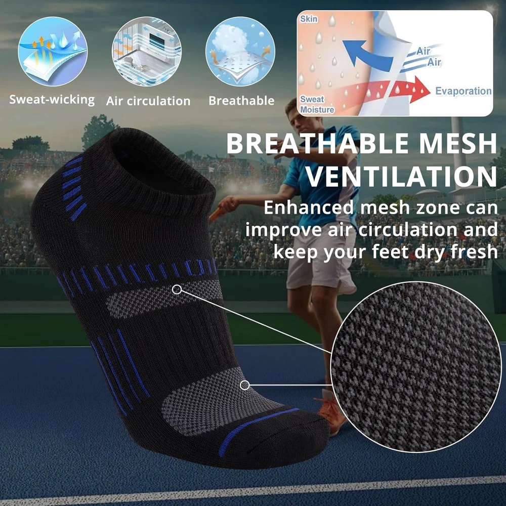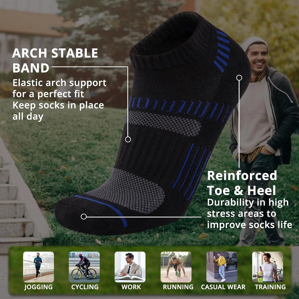 Mens 10 Pairs Ankle Athletic Low Cut Socks Cushioned Breathable Running Performa