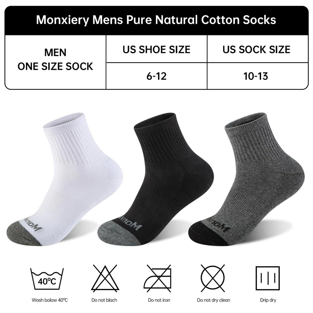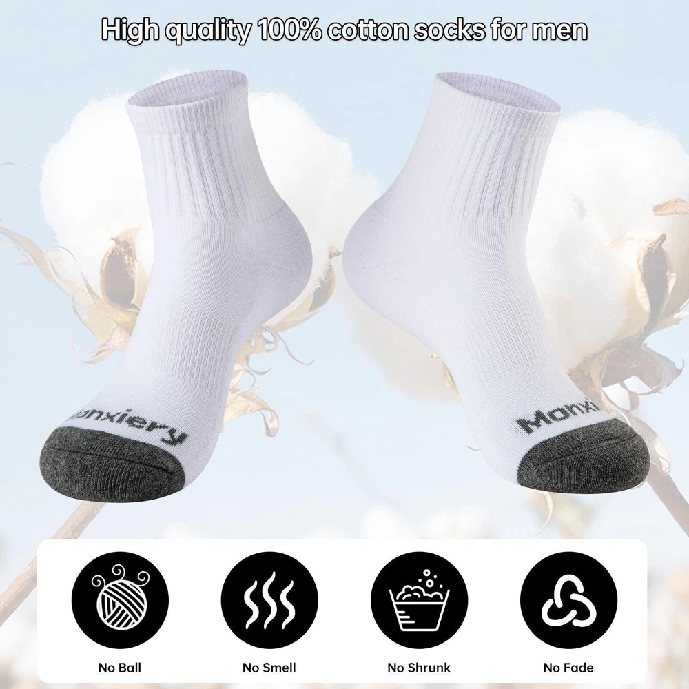 CONTACT US DIRECTLY FOR FREE & PREPAID RETURNS Mens 100% Cotton Cushioned Moisture Wicking Ankel Socks Athletic Performance ... 100% premium natural cotton ankle socks, every detail of the socks shows exquisite craftsmanship. Quality assurance, 100% satisfactory after-sales service, please rest assured to buy. Soft sole cushioning + reinforced heel and toe can effectively reduce pressure and make socks more durable. Non-slip stretch rib cuffs + arch support allow the socks to fit and stay in place perfectly on your feet. Natural cotton with super moisture-wicking properties + seamless toe provides you with more room for movement and keeps your feet dry and fresh. Mens ankle socks are simple and versatile, suitable for sports or daily wear. This is a good choice as gifts for family, friends and colleagues. REVIEWS The product came very well packaged. I'm very happy. thank you for everything. Seller strongly recommended. This is great! I definitely recommend! Product looks amazing Delivery was fast. Excellent seller, great communication. I advise everyone