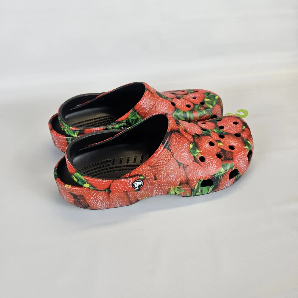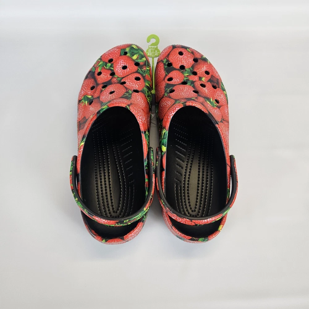 Style:ClogType:Casualgtin13:does not applyUpper Material:SyntheticClosure:Slip OnFeatures:Breathable, ComfortCustomized:NoUS Shoe Size:13Color:Red MulticolorDepartment:MenVintage:NoModel:CROCS Hyper Real StrawberryPattern:StrawberriesProduct Line:Crocs Hyper Real ClogsTheme:Botanical, City, College, Food & Drink, Nature, Outdoor, Beach, Gardening, Water, WeekendBrand:CrocsUPC:does not apply