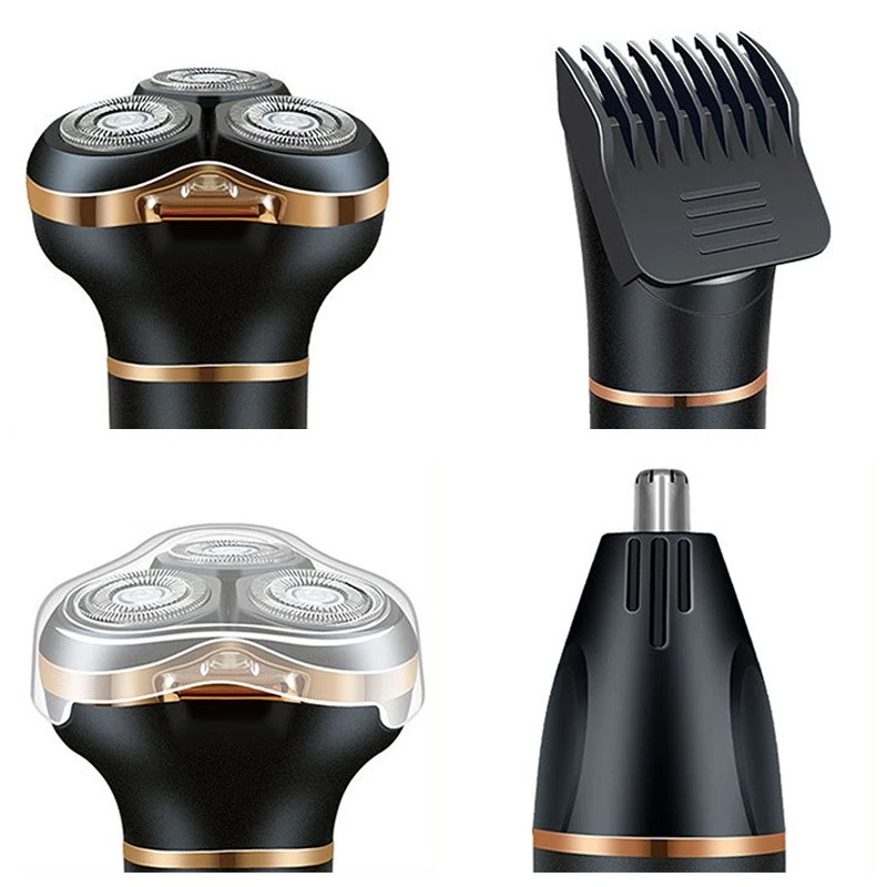 Features 1、POWERFUL VERSATILITY: Men electric shaving machine combines beard trimmer, hair trimmer and nose hair trimmer in one device to meet all types of trimming needs 2、FIT SHAVING: The men electric shaving machine features a floating head that smoothly adapts to your face, neck and chin for a comfortable, fit shaving experience 3、SMART FEATURES: The men facial electric shaving machine comes with a high definition display that displays low battery alerts and washing reminders. The men electric shaving machine also includes a convenient travel lock that allows you to safely turn off by simply pressing the on or off key for 3 seconds 4、WATER PROOF AND FLEXIBLE: Enjoy the flexibility of wet and dry shaving with an IPX7 water proof men electric shaving machine. Whether you prefer a quick dry shave, a refreshing wet shave with cream, or a luxurious shower shave, offer a fluent, fit shaving experience 5、EASY CHARGING: Enjoy flexibility with men electric shaving machine and USB charging. Connect the included USB cable to your computer, mobile power, or car. A 1.5 hour charge provides up to 90 minutes of use, and the convenience of cordless keeps you flexible Specification Item Type: Cordless Electric Shaving Machine Material: ABS and metal Blades Type: Triple rotatable blades Noise: 36-45dB Power: 5W Battery Type: 1000mAh li ion battery Package List 1 x Electric Shaving Machine 1 Set of Accessories 1 x Charging Cable 1 x User Manual