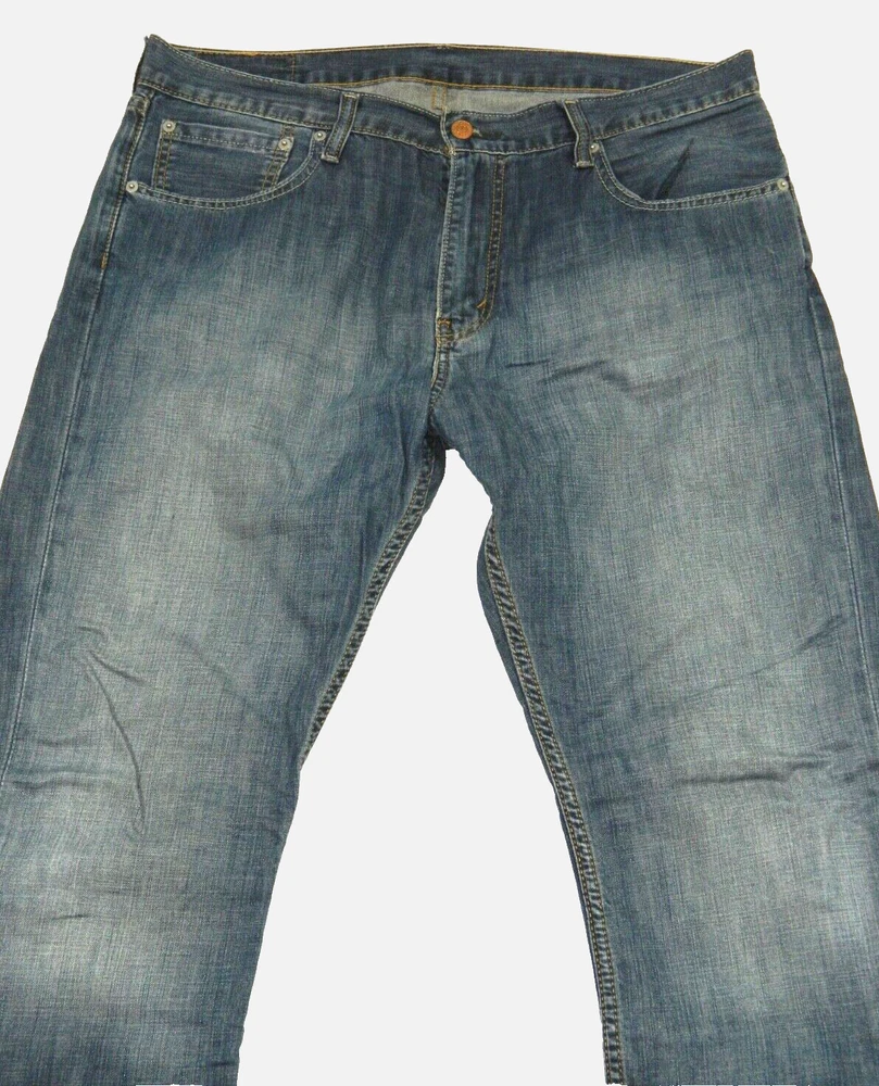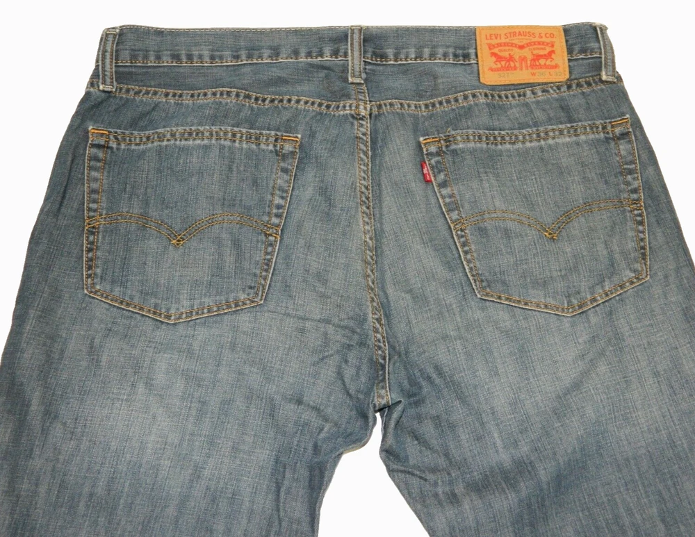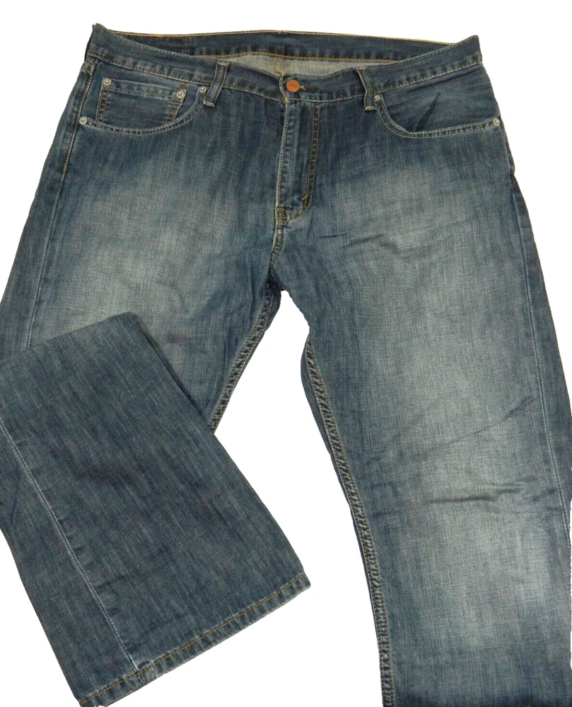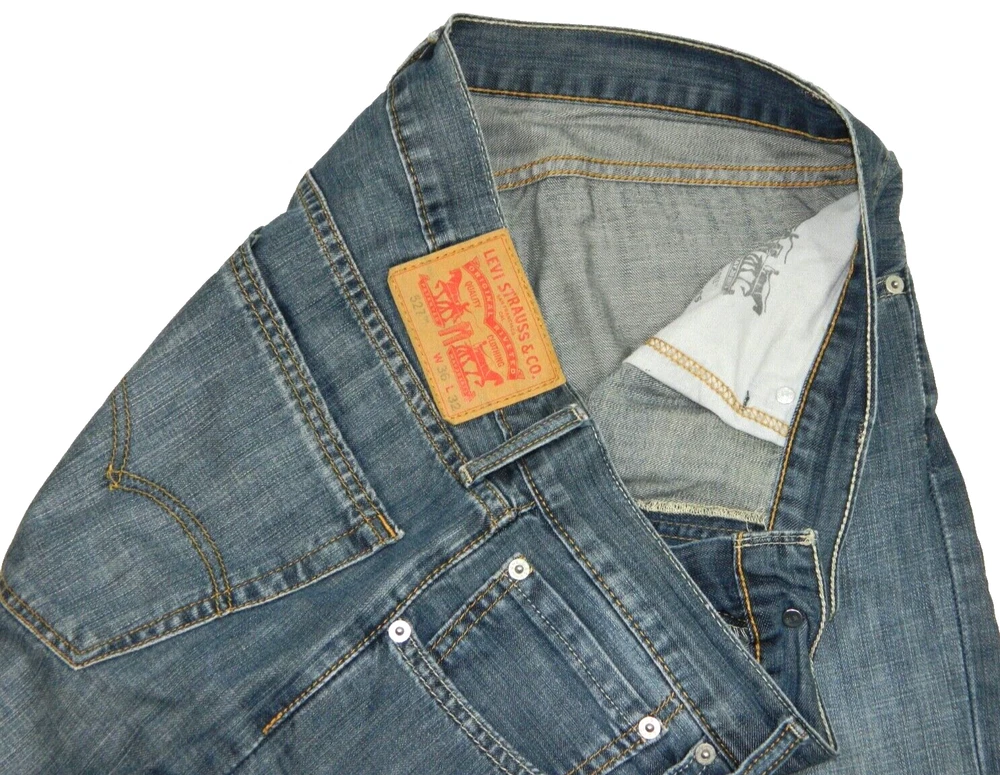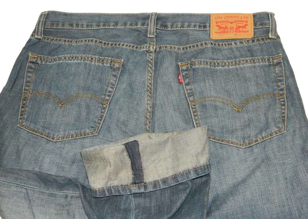 Newer pair of Levi Strauss Brand 527 Boot Cut Premium Denim Blue Jeans. Tag Size: 36x32. Maybe a factory tag error. Measured in inches: Waist: 18.75, Inseam: 32.5, Front Rise: 11.5, Leg Opening: 10. Worn just below the waist. 100% Cotton. No issues. BWO2