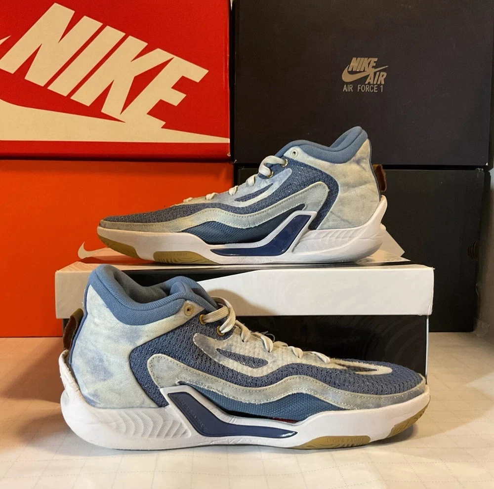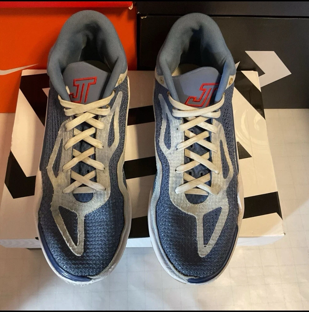 Elevate your game with these stylish and comfortable Nike Jordan Tatum 1 sneakers. Featuring a stone blue, university red, and mystic navy colorblock pattern, these shoes are perfect for any casual or activewear occasion. The mid-top shoe shaft style and lace-up closure provide a secure fit, while the rubber outsole offers slip-resistant and non-slip properties. These limited edition sneakers also come with arch support, cushioning, and comfort, making them ideal for basketball performance and activities. The Nike Jordan Tatum 1 'Denim' sneakers are a must-have for any sneakerhead or fan of Jayson Tatum.