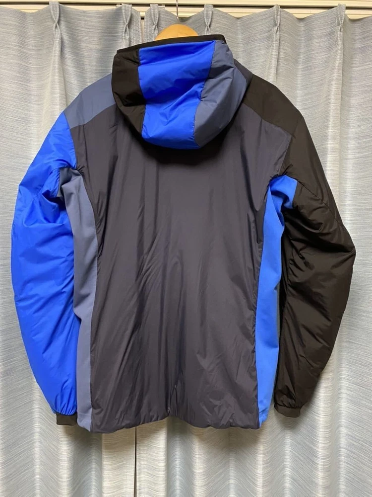 Men's ARC'TERYX BEAMS Atom LT Hoody Jacket in Boro Blue is a limited edition piece perfect for outdoor enthusiasts. This bomber jacket features a Primaloft insulation, making it lightweight, breathable, and water-resistant. The full zip closure and hooded design add extra functionality, while the zippered pockets provide convenient storage for essentials. Available in sizes small, medium, and XLarge, this jacket from Arc'teryx is a stylish and practical addition to any wardrobe.