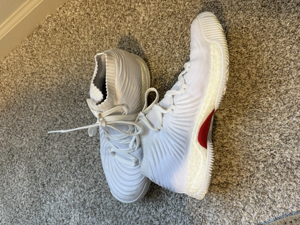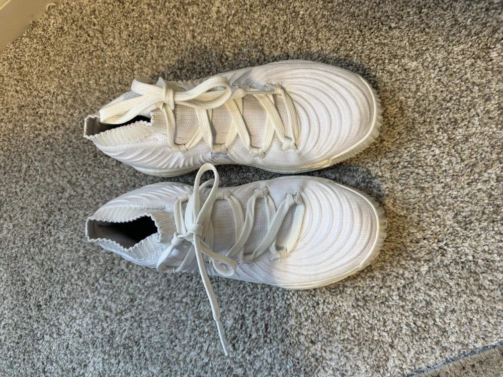 Like new condition! Worn for 1 basketball practice! Padded collar for comfort and stability Grippy rubber outsole wraps up and around midsole Heel lace system with molded heel piece for enhanced lockdown adidas Primeknit upper wraps the foot in adaptive support and ultralight comfort boost is our most responsive cushioning ever: The more energy you give, the more you get Description These basketball shoes are built for the lightningfast spin moves Andrew Wiggins uses to lose defenders. They feature boost that returns energy every time your foot hits the floor.