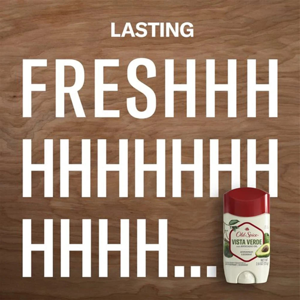 The Fresher collection of scents is all about discovering the freshness of nature, but after you've trekked to the most remote places on earth and you've made it home you'll discover that the freshness was inside of you the whole time because you're already great, you just smell sometimes, but that's okay. The Fresher Collection smells like a place where you don't need to wear pants or shoes or say hello to coworkers you don't like at the coffee machine. Men's Antiperspirant & Deodorant fights sweat for 48 hours. So bring the scent of your adventures home or smell like the adventures you haven't ventured yet. We won't judge. Just do you, guy. Vista Verde Antiperspirant & Deodorant smells like green avocado, powdery musk and tonka Antiperspirant & Deodorant with longer lasting protection Feel fresh with Everfresh Boost Vista Verde Antiperspirant and Deodorant packs 48-hour sweat and odor protection