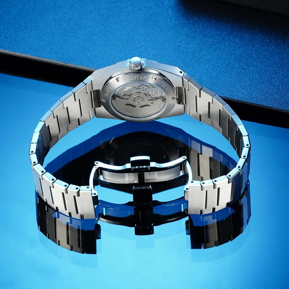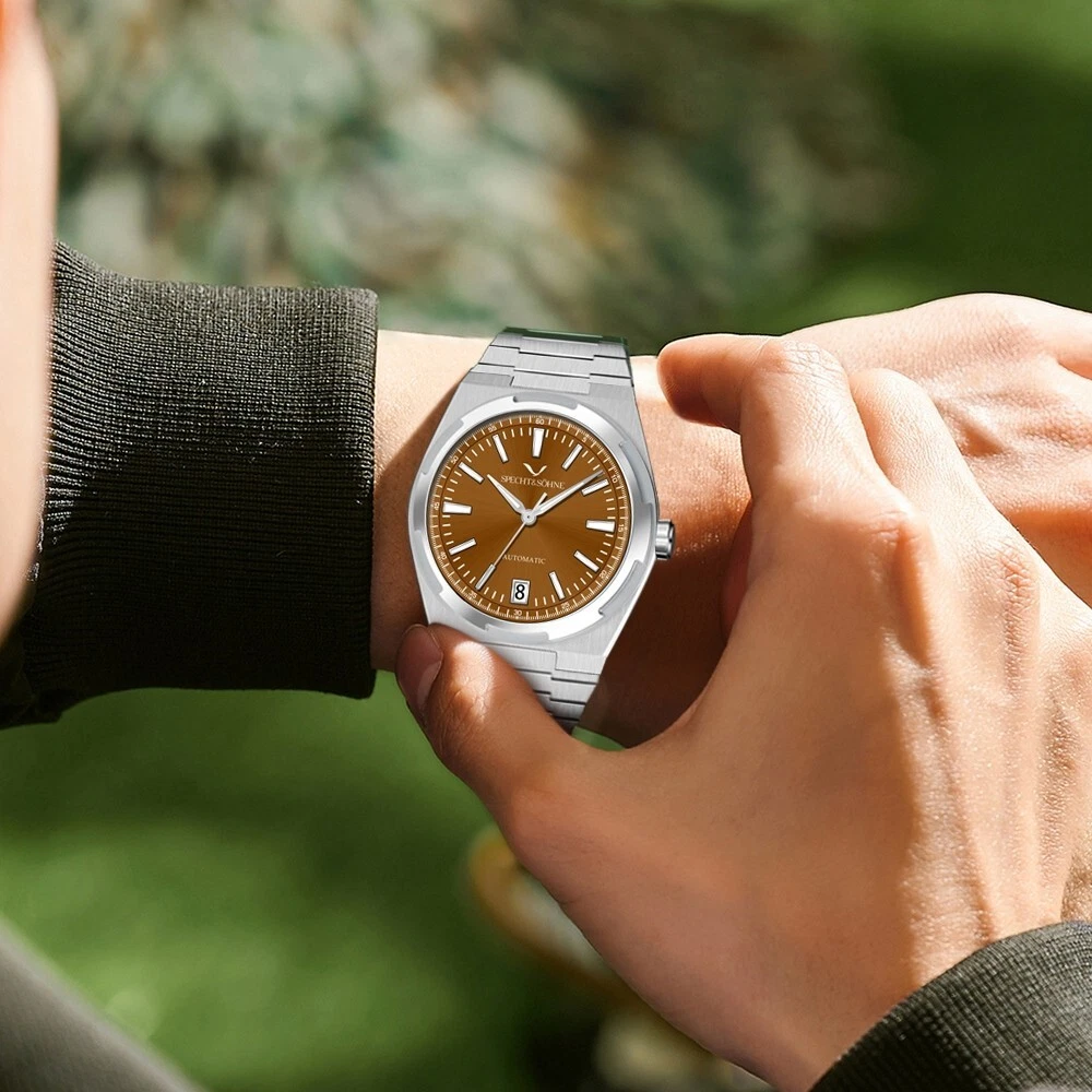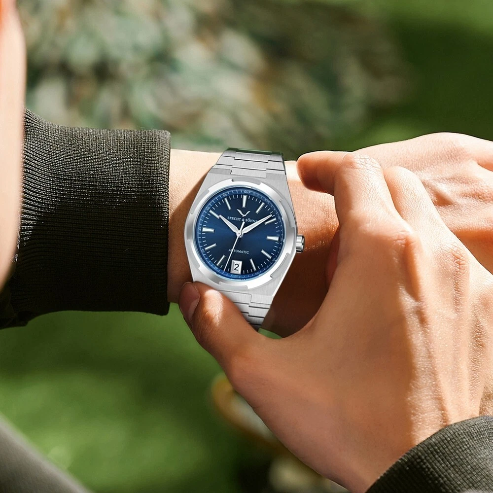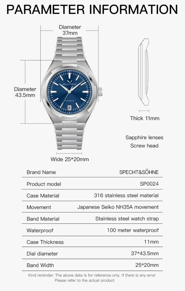 Specht&Sohne Men's Automatic Watch Japan NH35A Mechanical Movement Men's Watch Sapphire Glass 100 Meter Water Resistant Luminous Classic Casual Sport Watch ⌚ High Quality Men’s Watch:Glareproofed sapphire mirror, has very high light transmission, scratch resistance and refraction, preventing your watch from scratches.White stick hour-markers and hands with luminescent coating, easy to read time in the dark night. Date window at 6 o’clock. ⌚ Upgraded version of the NH35A: Powered by the Japanese self-winding caliber NH35A, the automatic chain movement has a power reserve of 42 hours. Since the rotor is connected to the manual part, the rotor rotates with every movement of the wrist and the energy is transferred to the mainspring. If the watch is worn for less than 10 hours a day, it can be wound manually for energy. When using the watch for the first time, rotate the crown about 20 turns. ⌚ Stainless Steel Strap: 316L stainless steel semi-circular triple link bracelet is comfortable to wear and comes with a gadget for adjusting the bracelet, allowing multiple links to be loaded and unloaded for a perfect fit on the wrist. The solid stainless steel band is heavier and stronger than other bands. With careful care, it will last forever. The bracelet with brushed finish is more textured and shows off quality and status. ⌚Men's Waterproof Watches: Stainless steel bezel with high-precision seamless technology, waterproof to 100 m, which can allows you to easily face life, rain, face washing and swimming are no problem. But not recommended for diving and hot bathing ⌚ You will get: one Specht&Sohne watch, one Specht&Sohne exquisite box, one Specht&Sohne watch manual (English version is not guaranteed), one Specht&Sohne watch cloth. You can also enjoy our best service, 30 days return without reason and 2 years watch warranty.