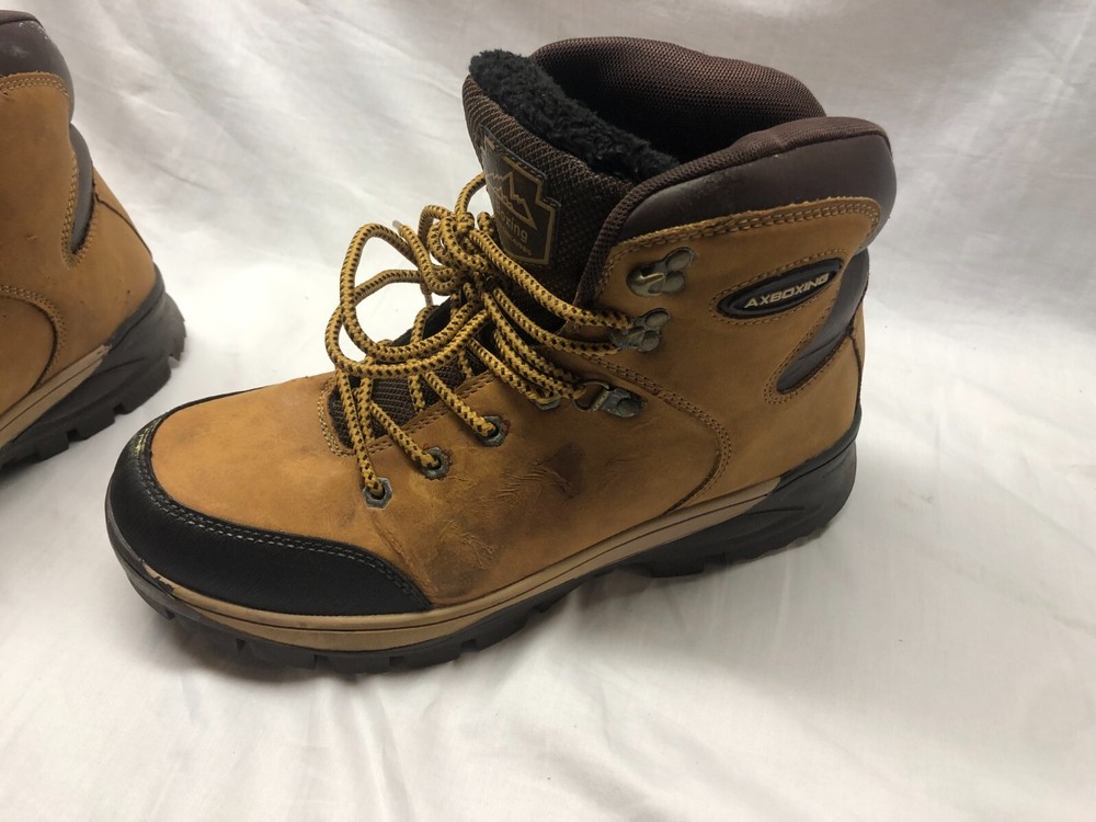 For sale is one (1) pair of USED Ax Boxing Brown Hiking Boots Size 8.5 US Men's as shown in pictures. There is damage to the exteriors of the shoes you can see the white paint and other stuff in the pictures please look carefully. ***Please allow 1-3 days for handling. No returns; item being sold as-is - please see photos and ask questions before buying.*** Terms and Conditions: 1.) All items, new or used, are sold AS-IS. We are surplus dealers and do not have the ability or knowledge to test items for functionality. 2.) All statements regarding items are made to the best of our ability and with the assumption that the buyer is knowledgeable and proficient in the use of these items. 3.) We have no knowledge of the history of these items. Due to the nature of surplus and or used items, no guarantees or warranties are either expressed or implied. 4.) We are NOT liable for any and all issues regarding this item's functionality and/or structural integrity and is not liable for any and all issues resulting from installation, improper manufacturing, or misuse. 5.) We are NOT liable for any and all issues that may occur with this item during use. 6.) It is the Buyer's responsibility to inspect and test this item for functionality and confirm that it is suitable and safe for installation. 7.) We are not a distributor or the manufacturer of this item and do not warrant this item's suitability for any application. 8.) By purchasing this item, the Buyer acknowledges and accepts the terms and conditions of the sale and releases us from any and all liability. 9.) It is the Buyer's responsibility to understand the terms and conditions of this sale and the nature of the items offered and bid accordingly. Please see pictures for further description.