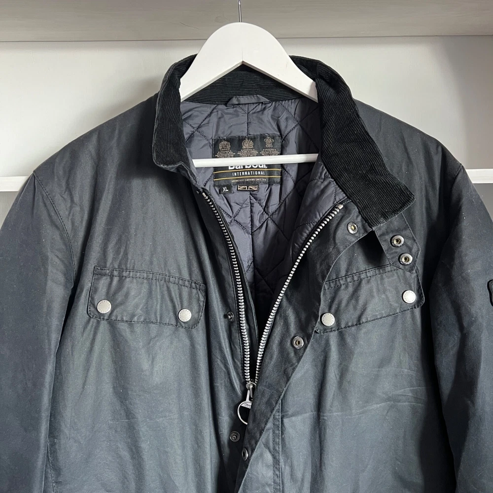 Men's BARBOUR INTERNATIONAL DUKE Waxed Cotton Navy Jacket Size XL Condition: excellent used condition, has small signs of wear, no defects Size: XL , but please check measurements below! Length back 75 cm / 29.5" Pit to pit 60 cm / 23.6" Shoulders 50 cm / 19.7" Sleeve length from shoulder 65.5 cm / 25.8" Feel free to ask any questions! Worldwide shipping with tracking from outside Ukraine, estimated time to US / UK / EU and other countries - from 15 to 25 days!