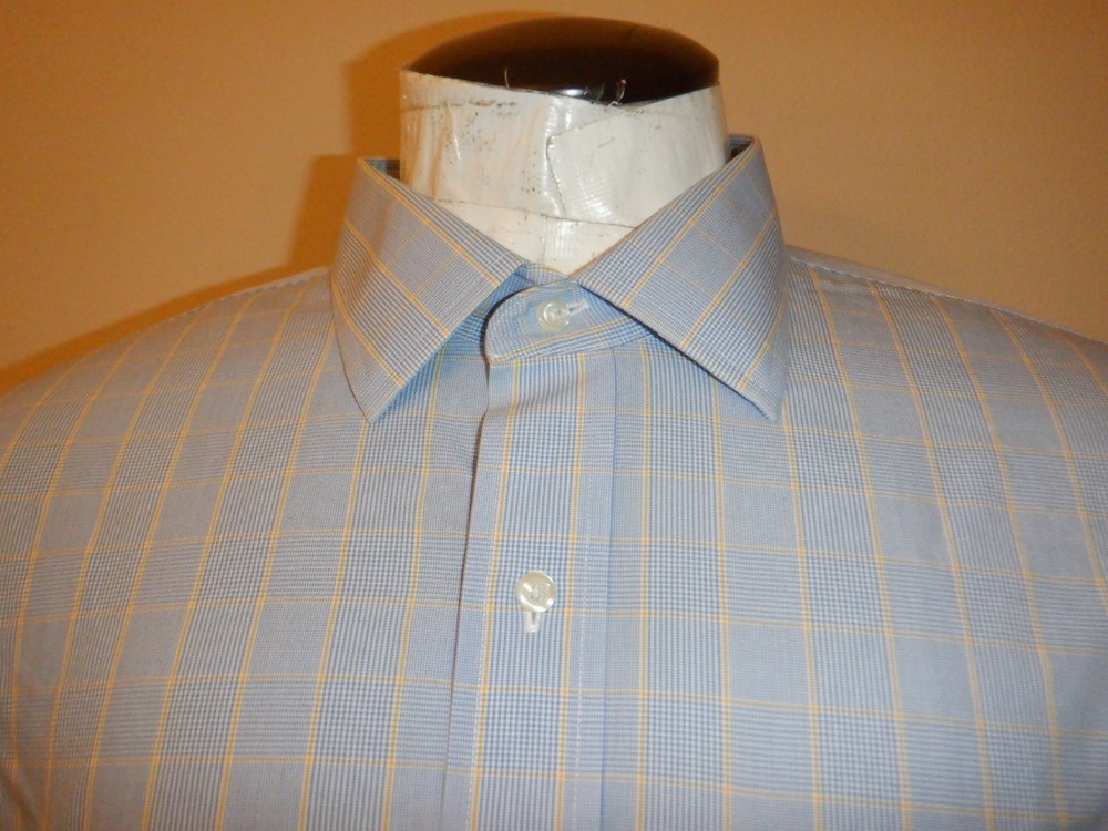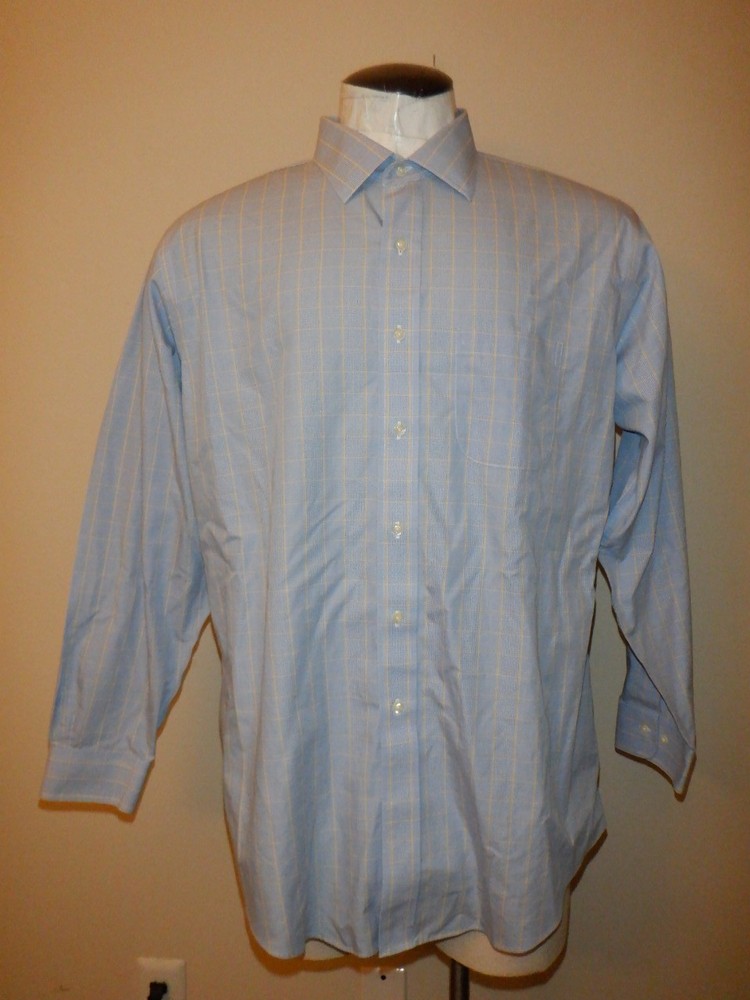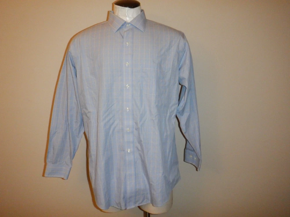 $ 7.38David Donahue Dress Shirt Mens 16.5 32/33 Blue Check Trim Fit Luxury Non Iron