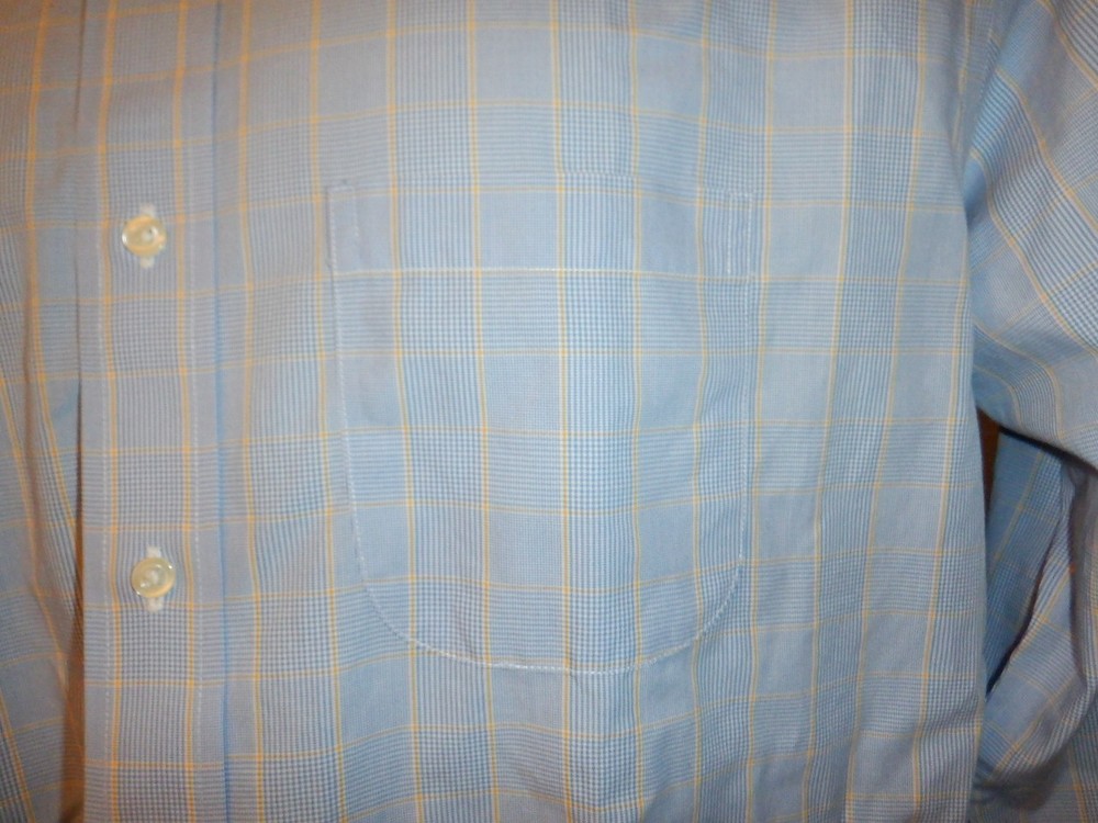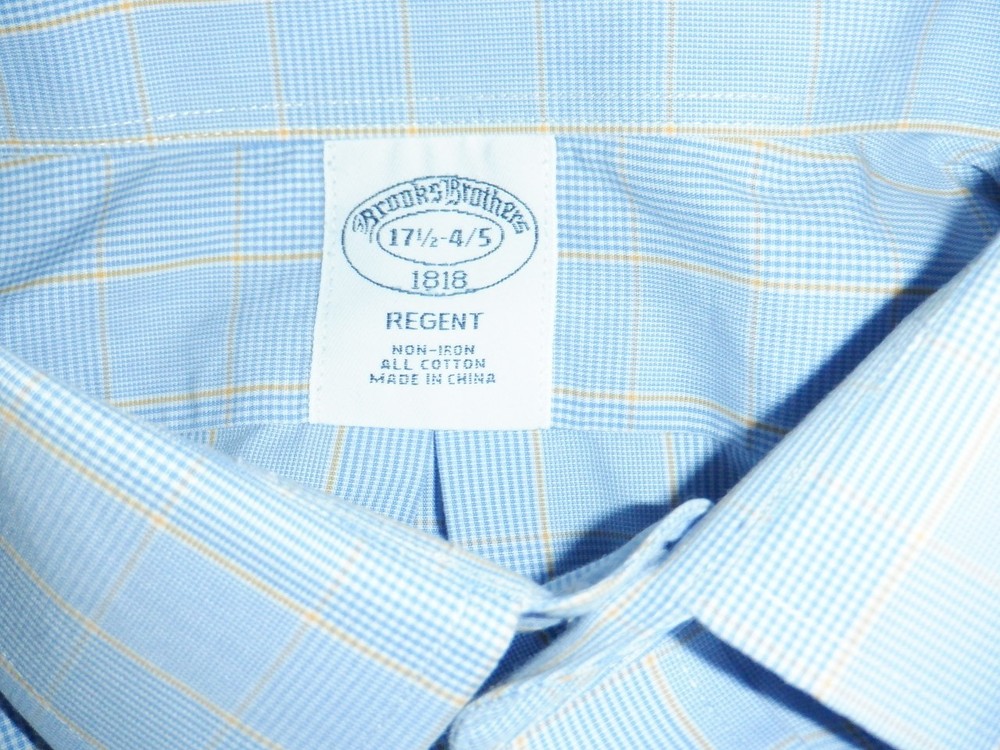 For sale is a Men's Brooks Brothers Regent, non-iron, long sleeved button front dress shirt, size 17 1/2-4/5. Large blue plaid, all cotton, 1 left chest pocket and it is machine washable. This shirt is in very good used condition. Measurement: Underarm to underarm - 25 Sleeve length - 35 Length - 32 We are offering a limited time special, buy $100 worth of clothing and get free shipping (US only). This shirt was freshly washed, but it would need to be ironed as I am terrible at ironing. Thank you for looking and God bless you and your family.