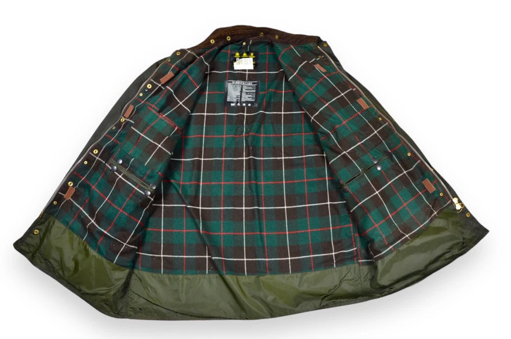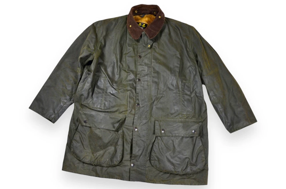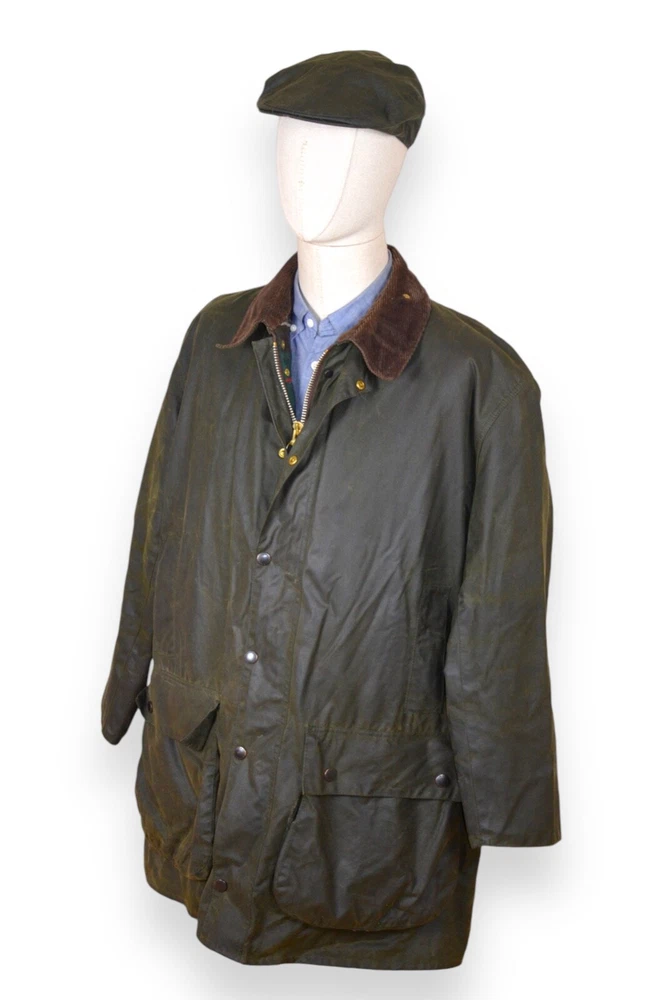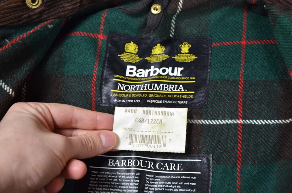 Style: Jacket Closure: Snap, Zip Model: Barbour Northumbria Features: Waxed Outer Shell Material: Wax Cotton Lining Material: Acrylic Size: 48 Performance/Activity: Hunting, Walking Vintage: Yes Country/Region of Manufacture: United Kingdom Type: Jacket Color: Green Seller Notes: “Condition 10/10. Light smell of smoking‼️” Season: Fall, Spring Jacket/Coat Length: Long Occasion: Casual, Travel Department: Men Brand: Barbour Size Type: Regular