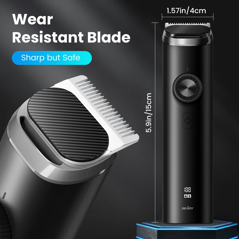 Product Description In modern families, haircuts, trimming, shaving are already synonymous with fashion. Before, haircuts need to go to barbershops. Nowadays, we not only go to barbershops for haircuts, but also will buy a family hair clipper. With the gradual improvement of living quality, we realize that haircutting at home is a healthy and fashionable way of life, also good for spending some qualified time with family and ourselves. And we give more importance to health than fashion. Beard trimmer, hair clippers, nose hair trimmer become one of the must-haves for many emerging home care appliances. Sejoy focused on Personal Healthcare devices, home-care devices and Mother and Baby care products as a Professional Manufacturer for 20 years. We are here to provide you a whole package for the family due to the needs for hair, which is not only a good buy when purchase, but saves a lot every time you use. We warmly invite you to be one of our beloved customer! About this item Premium Blades: Mens hair clippers designed for smooth, quick, and clipping performance on all types of hair with high quality long lasting self-sharpening premium stainless blades, The tip part adopts safe R outlineing obtuse angle design, the professional edgers clippers satisfy any styling needs,such as lining, sculpt contours, and dry shaving. Super Easy to Use: This hair trimmer and clipper comes with 0.5-20mm comb*1, 20-40mm comb*1, Nose& Ear hair trimmer head*1, Shaver Head*1, Bush*1, Oil (used before and after a haircut)*1, travel sack*1, charging cable*1. Ready to use once reveived. User friendly, makes life easier when you are trying to follow the grain. Rechargeable & long-last battery: This hair clipper is equipped with the international standard 18650 capacity lithium battery provides exceptionally long using time and strong power output. It can support 280 minutes use of a full charge. Also compared with other types of batteries, it takes less time to reach full charge. Takes 3 hours to fully recharge by usb cable. Precision Length Dial: For 40 length settings in 0.5 mm step sizes, provides an effortless trimming experience with only 2 combs. Low noise & IPX5: With noise≤68bB and Full body washable. No hassle during and after using. Warranty: We are decent and integrity company exsited for 20 years, quality is guaranteed. Any questions, we are alway here to assist. 0.5-40mm Limit Comb With only 2 limited combs and a knob, the length limit of hair cutting can be adjusted by lowering the hair clipper to a state where only a certain length of hair can be cut, which greatly reduces the operating threshold of the hair clipper. Low Noise Noise is what we care about. With high standard guaranteed by delicate structure and quality control, noise is at minimum level to suit for operating for kids and toddlers. Compact Design With compact design and replacable blades, and stylish pouch, it is easy to take anywhere.