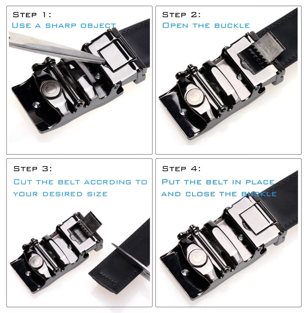 Welcome to Kumbala eBay Store Description: 100% brand new and high quality - Real Made in Korea Genuine Leather Belt - Belt for Automatic Buckle - The stylish Comfort Click Belt guarantees a perfect fit every time - Unique design utilizes a micro-ratcheting track system that allows you to adjust the belt every 1/4" - Say goodbye to belt holes and stretched out, uncomfortable belts - No holes on the outside. Makes it look like a custom made belt just for you - Made of genuine leather with a stylish, quick-release, silvertone metal buckle - Great gift for your loved ones PACKAGE INCLUDES: 1X Leather Belt Please choose your color. Shipped according to your color