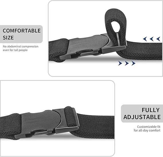 Mens Belts Stretchable Mens Stretch Belt Elastic Nickel Free Belt Tsa Approve Size: XL-Size 41(Length 47"/120cm) Color: Black Fabric type: Artificial Silk Fiber Care instructions: Machine Wash Pass through security easily with a TSA-approved, non-metal belt that ensures smooth airport screenings. Hypoallergenic Belt: Over 18% of people in North America are allergic to nickel, and hypoallergenic belts are metal-free, effectively preventing metal allergies. Elastic & Breathable: Made from artificial silk fiber material, this elastic belt offers excellent stretch, flexibility, and breathability, ensuring comfort and support all day long. Fully Adjustable: The hole-free big and tall belt offers a precise, customizable fit for all-day comfort without causing abdominal compression, even for big and tall individuals. Durability & Convenience: The PC material quick-release belt buckle offers exceptional durability and load-bearing capacity, allowing for easy adjustment and removal, perfectly meeting the daily convenience needs. Return Policy: We offer a 30 day return policy from the receiving date. Please contact us for a Free Return Label. Please use our return label so it will go back to our supplier and we can do a refund or replacement afterwards. Feedback: Your satisfaction is very important to us! If you have any problem with your order, please contact us and we will do our very best to make you satisfied. As long as you are happy with your purchase, please leave a positive feedback for us. We will always leave you a positive feedback in return. If you have any problem with your purchase, please do not leave a negative feedback. Please Contact us ... and your issue will be solved quickly and positively We are a small family-owned business trying to make a living, not a huge company that does not care ... We will ALWAYS do our best for you!