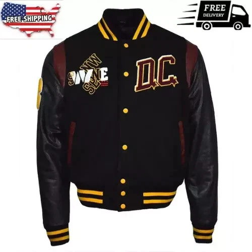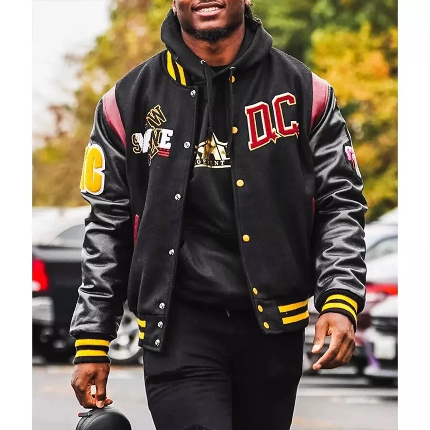 Men’s Black 90th Anniversary Washington Commanders DC Proper Varsity Jacket – Free Shipping! Celebrate 90 years of Washington Commanders history with the DC Proper Varsity Jacket , a tribute to the team’s incredible legacy. Designed with classic varsity style and premium materials, this jacket features the iconic colors and 90th-anniversary insignia, making it a standout piece for any true fan. Whether you're wearing it to the game or out on the town, this jacket is sure to make a statement. Key Features: Material: High-quality wool body and genuine leather sleeves for durability and comfort Lining: Soft viscose lining for a comfortable fit Color: Classic black, perfect for showcasing your team pride Front Closure: Snap-tap button closure for easy wear Collar: Rib-knitted collar for a sporty and comfortable fit Sleeves: Long sleeves with rib-knitted cuffs for added warmth and style Hemline: Rib-knitted hemline for a polished look Pockets: Two side pockets on the outside and additional inside pockets for extra storage Design: 90th Anniversary Washington Commanders graphic prominently displayed on the front, back, and sleeves Stitching: Fine stitching for durability and a high-quality finish Sizing Information: Please measure your chest and refer to the size chart in the product photos to ensure the perfect fit. Payment: We accept PayPal , Credit Cards , and Debit Cards for secure transactions. Shipping: Free Standard Shipping (4-6 business days) Your order will ship within 5-6 business days after receiving payment. Items will be shipped to the address listed on your eBay account, so please make sure your address is correct before checkout. Returns: We offer a 30-day return policy to ensure you’re satisfied with your purchase. If you encounter any issues, please contact us directly via eBay messages . We’ll work with you to resolve any concerns. Important: Please do not open a case as it negatively impacts our store. We’re committed to providing excellent customer service and will assist you in every way possible. Get Yours Today! Don’t miss out on this 90th Anniversary Washington Commanders Varsity Jacket —the perfect way to honor the team’s legacy and show off your pride in style.