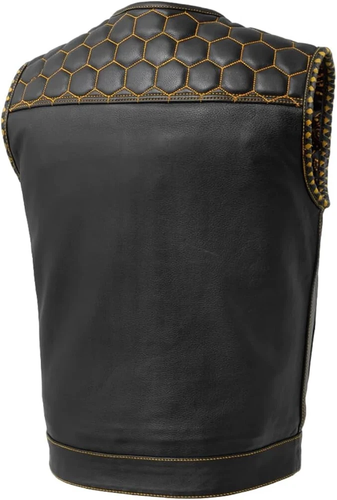 Mens Black Diamond Leather Vest - Anarchy Hunt Club Hornet Motorcycle Biker Vest