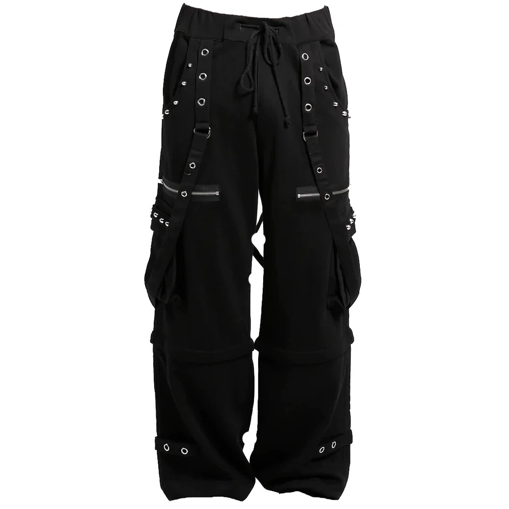 Elevate your wardrobe with the Tripp Apparel Men's Black Gothic Punk Pants, a perfect blend of style and comfort for the fashion-forward individual. Featuring an adjustable waist with straps, these pants offer a unique take on a classic style, catering to a variety of occasions from casual outings to more formal events. The solid black color and wide-leg design exude a sense of sophistication, while the cargo and slash pockets provide practical storage for your essentials. Crafted from premium cotton fabric, these pants promise ease of care and all-day comfort. Whether you're attending a business meeting or enjoying a night out, these versatile pants, with their reflective features and buckled accents, are a testament to alternative fashion. Handmade with care and available in a size 34 inseam, they are a distinctive addition to any collection.