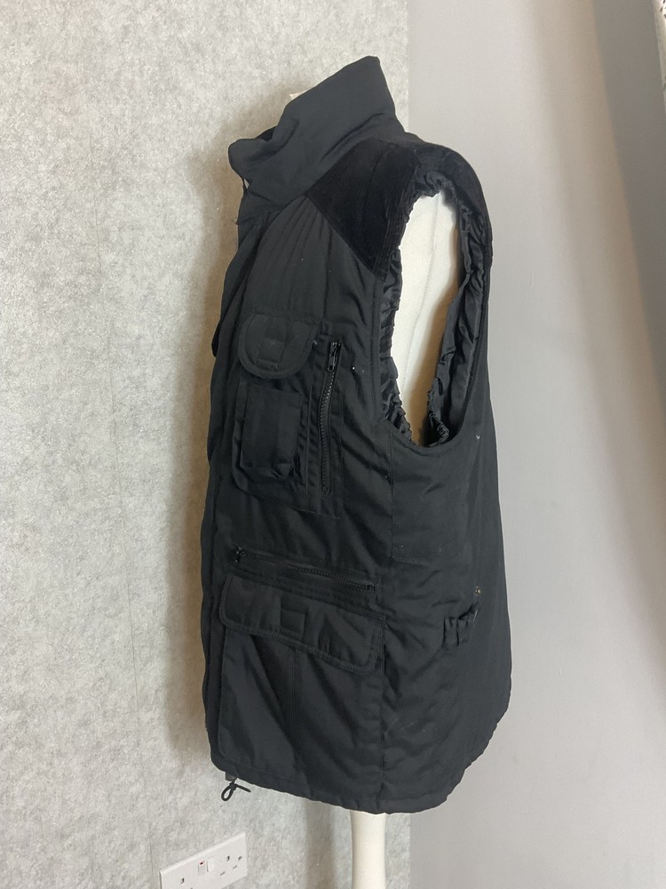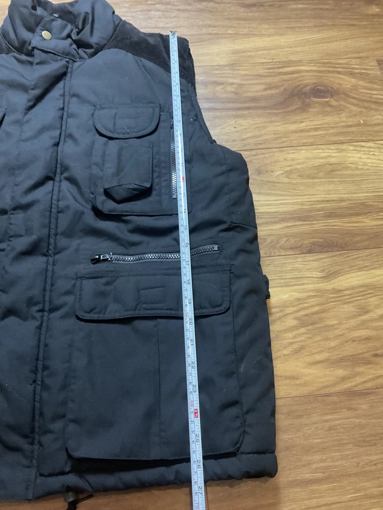 Cutting Edge padded gilet / bodywarmer /Utility Vest for man Black colour Warm padded design Multiple zip & flap pockets Corduroy detail on shoulders High collar with snap fastening Adjustable drawcord hem A practical and comfortable gilet, ideal for outdoor wear, walking, work, or casual layering. Condition: Excellent pre-owned condition Colour: Black Fit: Regular Material: • Outer: 65% polyester / 35% cotton • Lining & padding: 100% polyester Measurements: Please see photos for approximate measurements